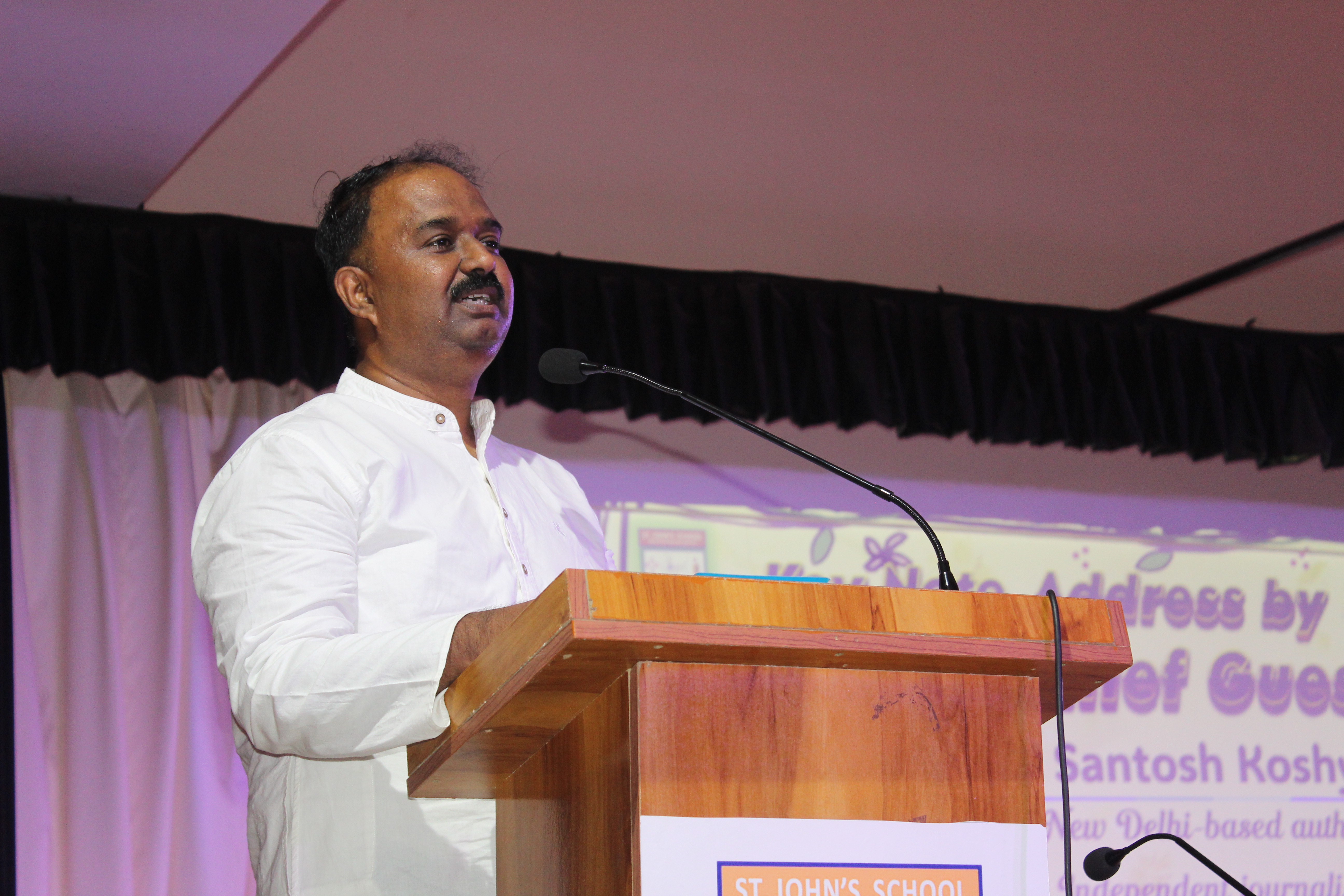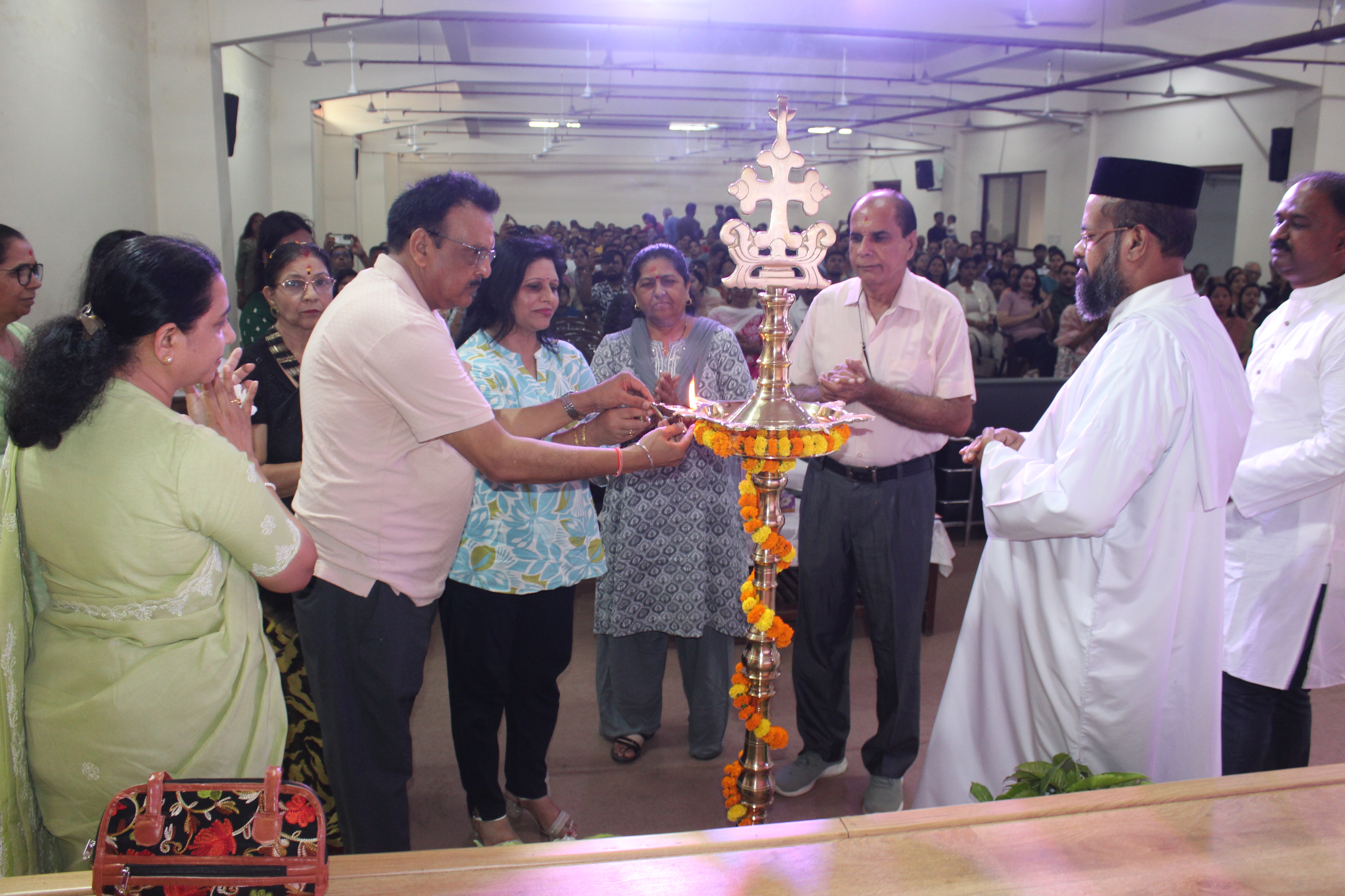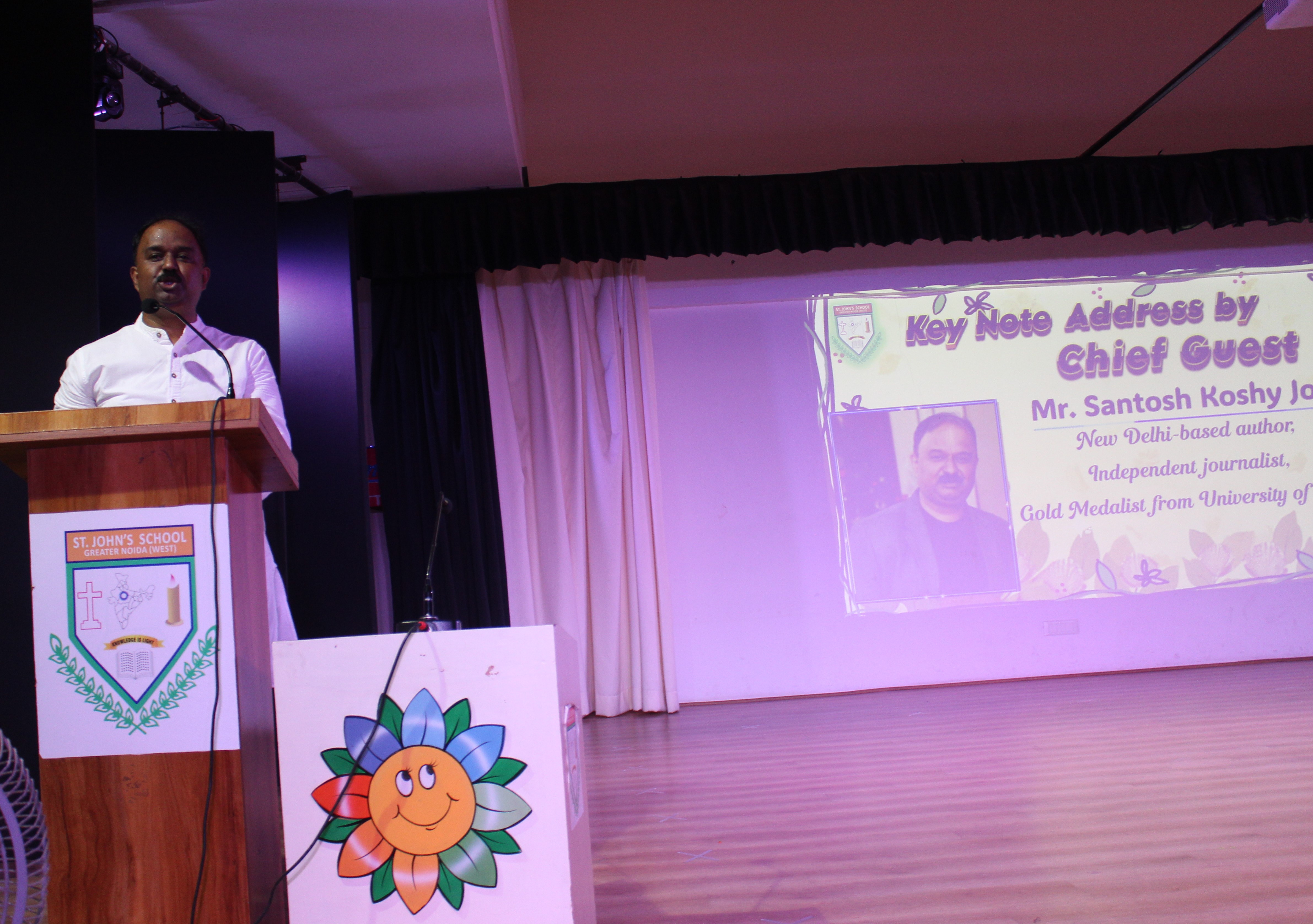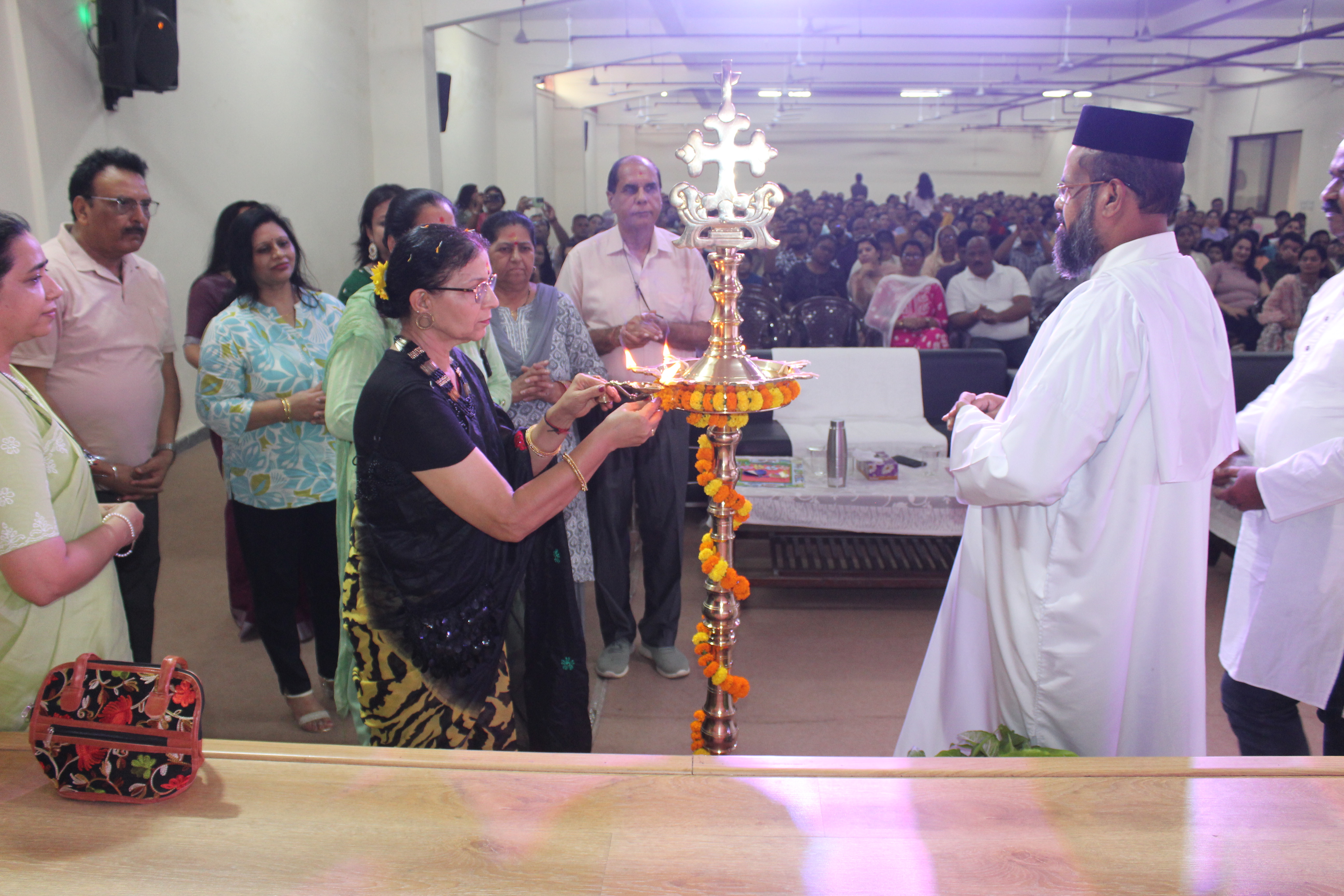 The program began with Divine Blessings and the Lord’s Prayer, followed by the lighting of the ceremonial lamp by Rev. Father T.J. Johnson, the Chief Guest Mr. Santosh Koshy Joy – an accomplished author, independent journalist, former parliamentarian, and doctoral scholar of social sciences at Delhi University, Principal Ms. Reeja Ninan and NTT Coordinator Ms. Rashmita Sarkar. This auspicious start symbolized spreading light, knowledge, and positivity.