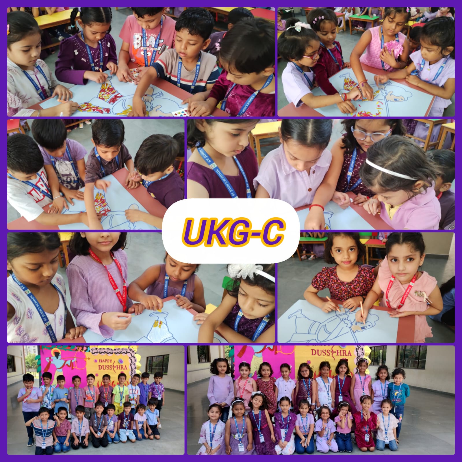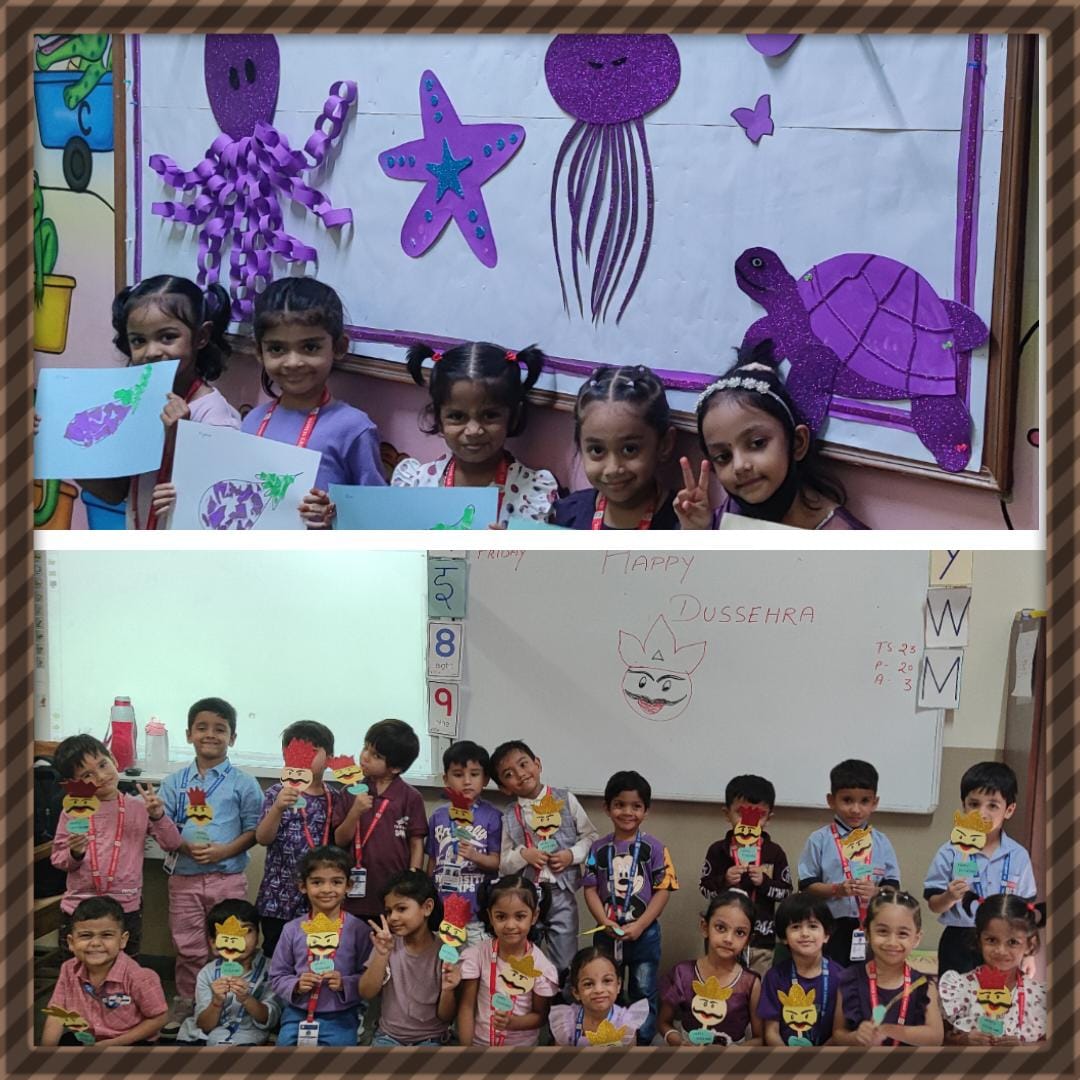 On 26th September 2025 (Friday), the Kindergarten Department of St. John’s School, Greater Noida West, joyfully celebrated Purple Colour Day, Bagless Day, and Dussehra together. The day was packed with learning, creativity, and cultural spirit.