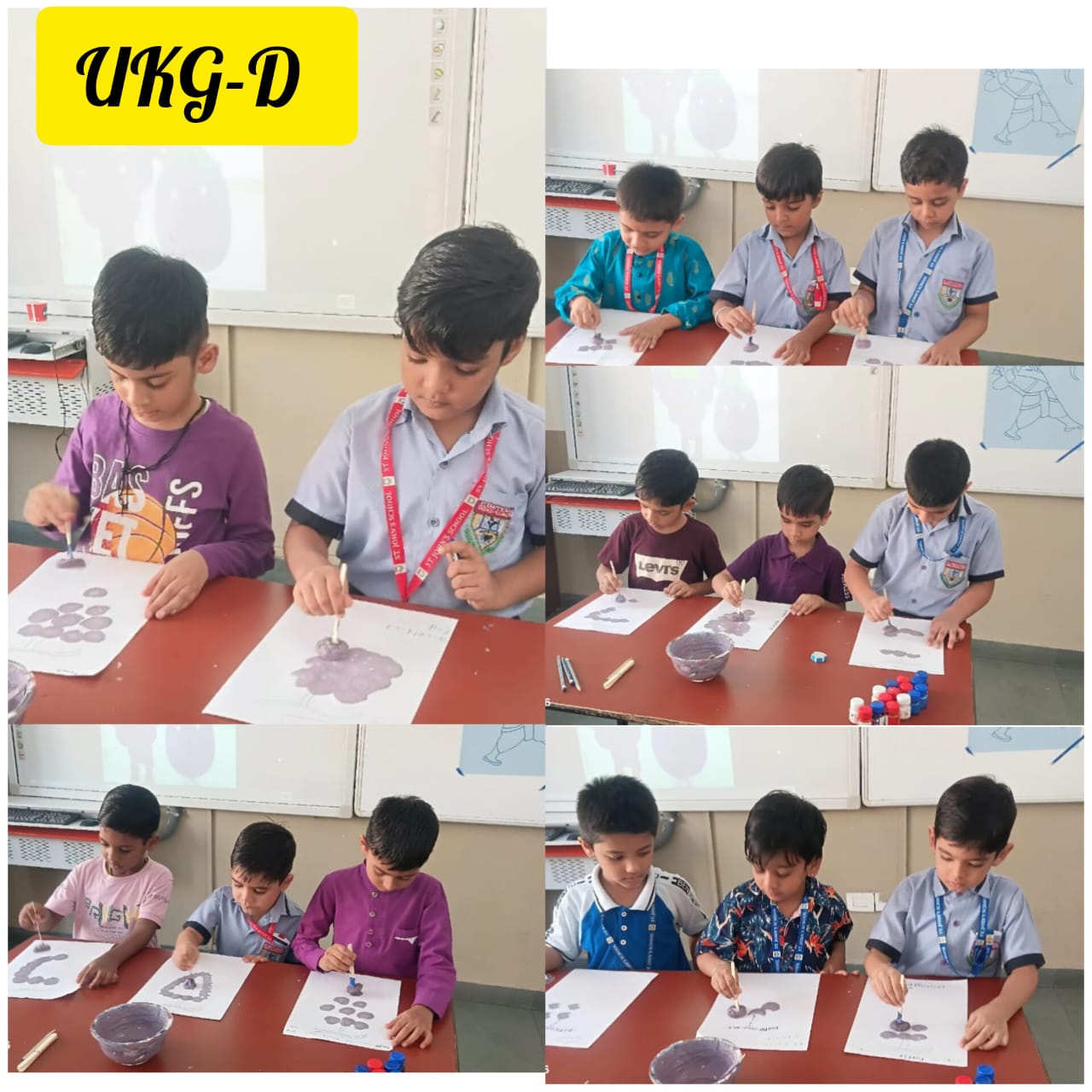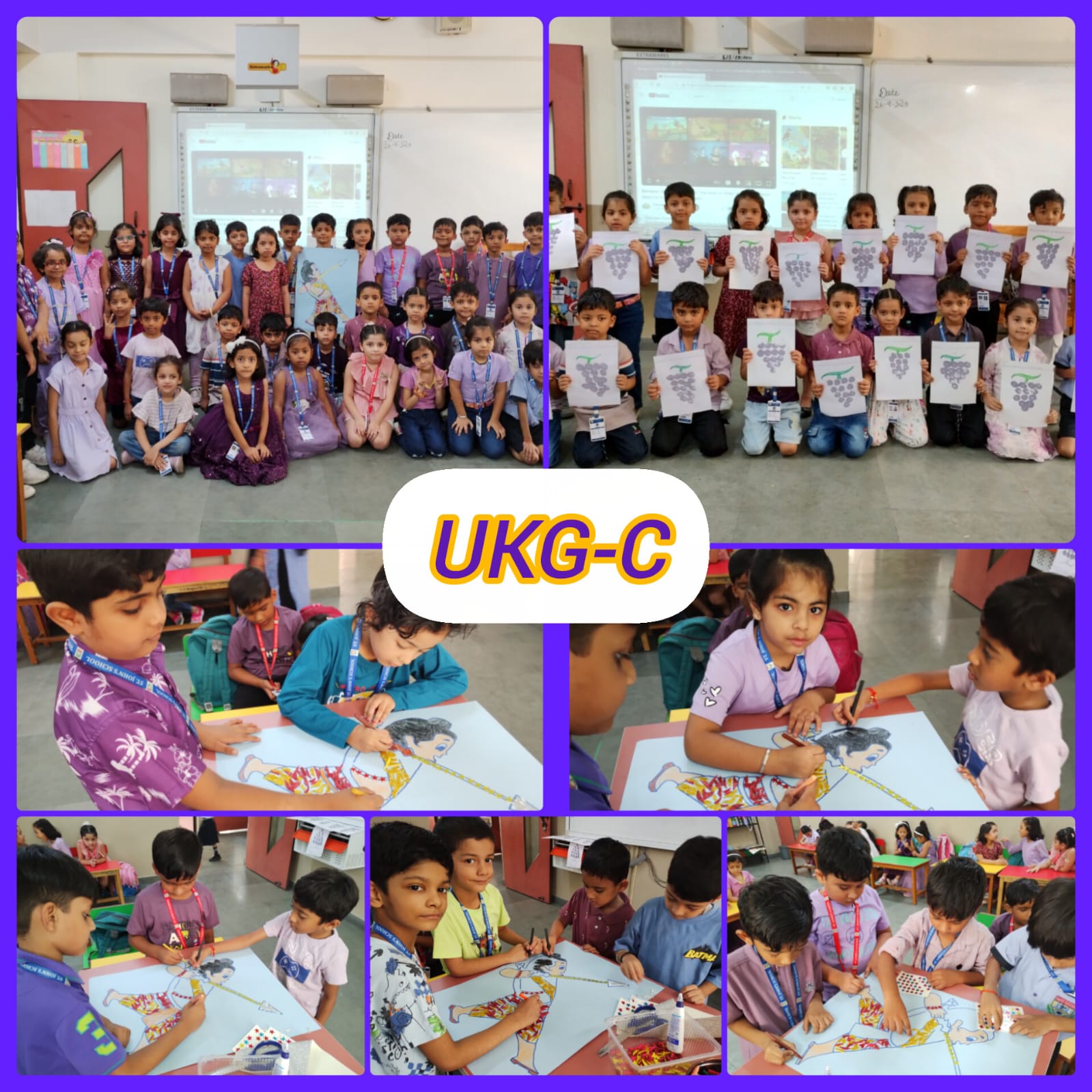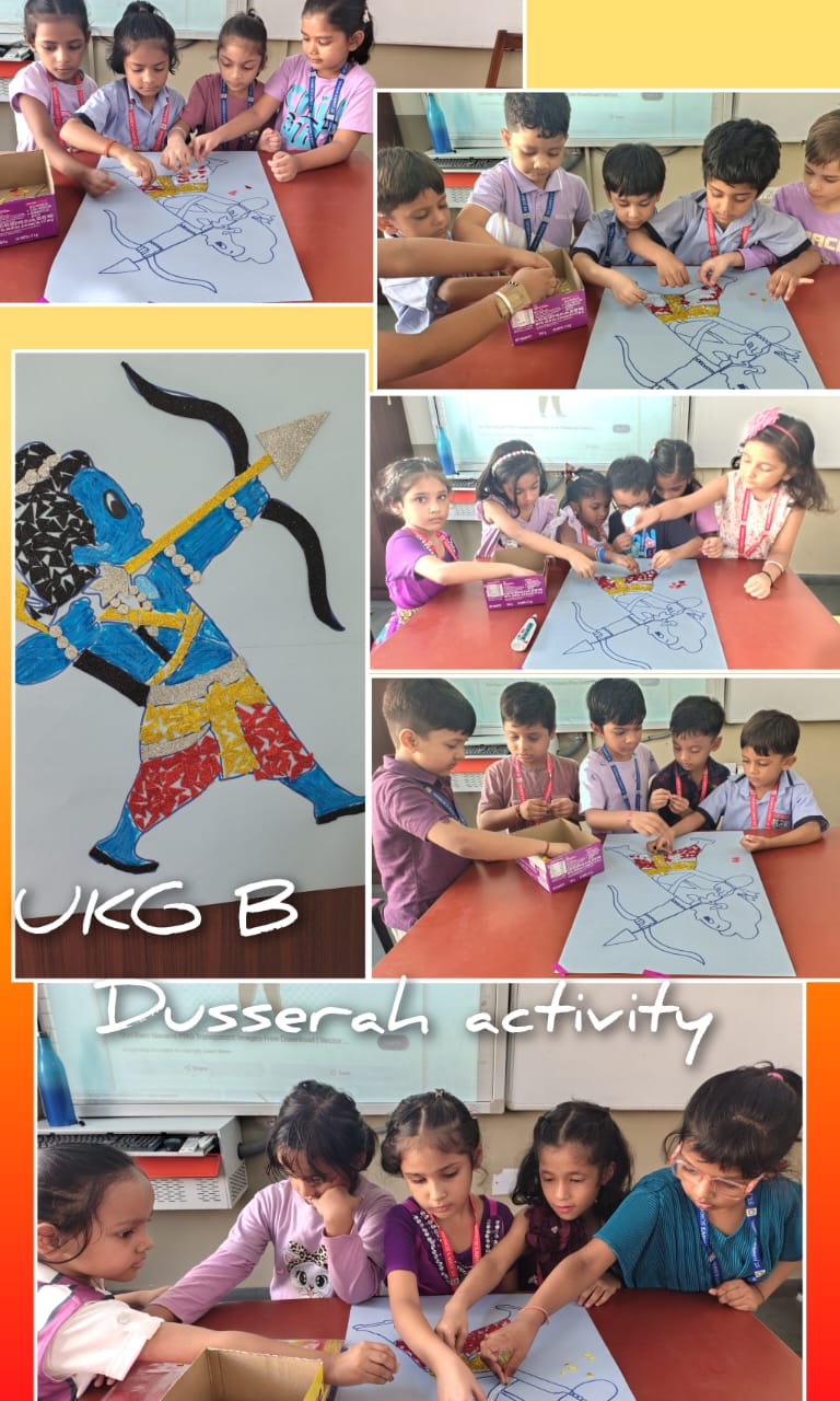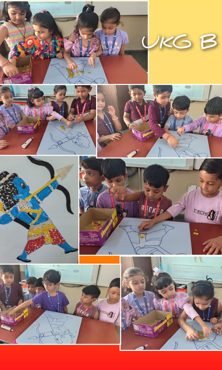 UKG students engaged in tearing-and-pasting on Lord Rama’s picture and explored sponge printing on grapes.