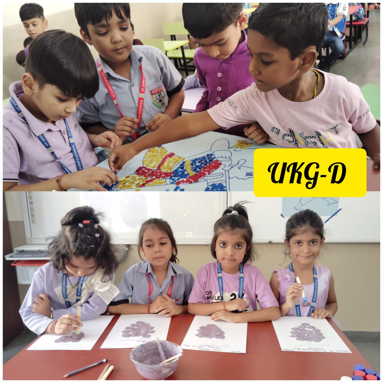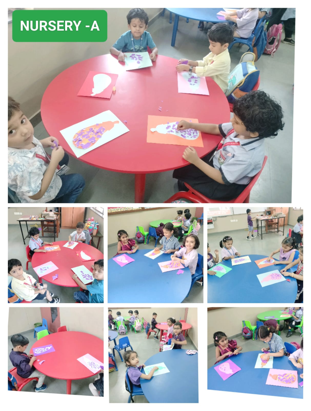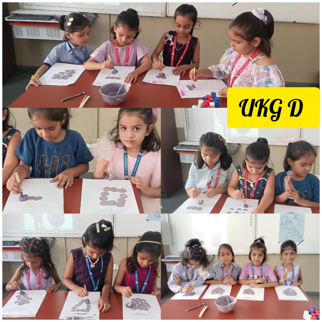 UKG students engaged in tearing-and-pasting on Lord Rama’s picture and explored sponge printing on grapes.