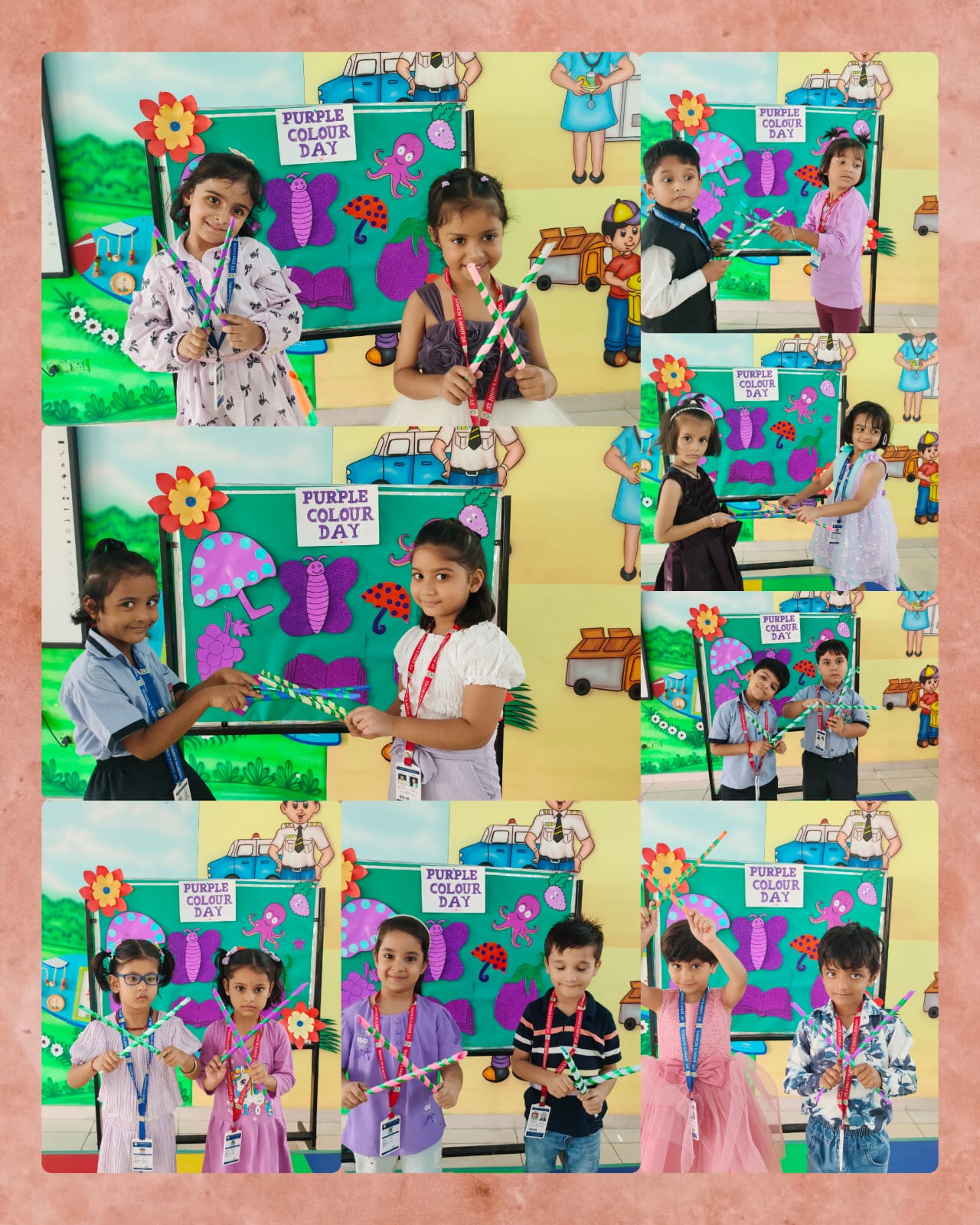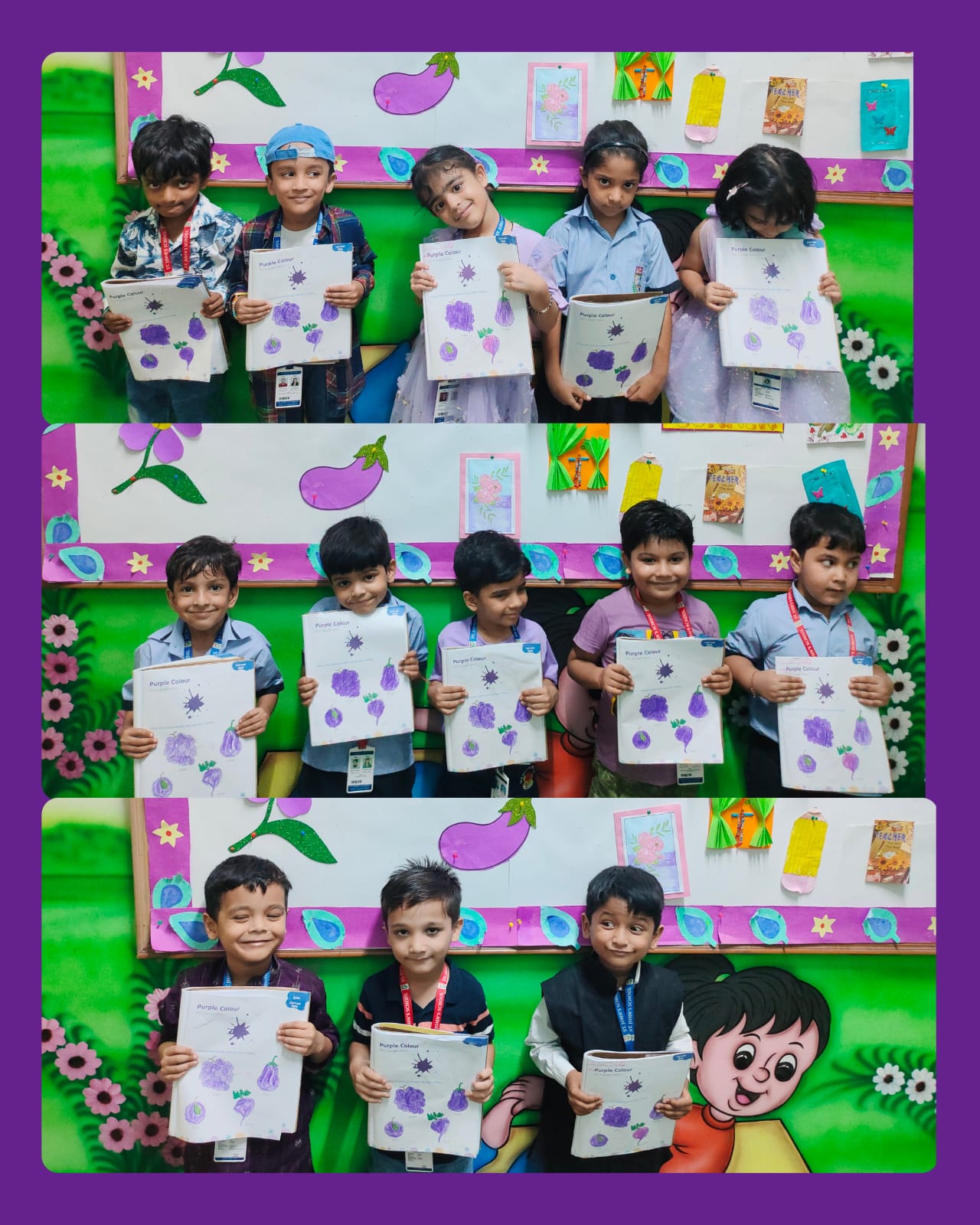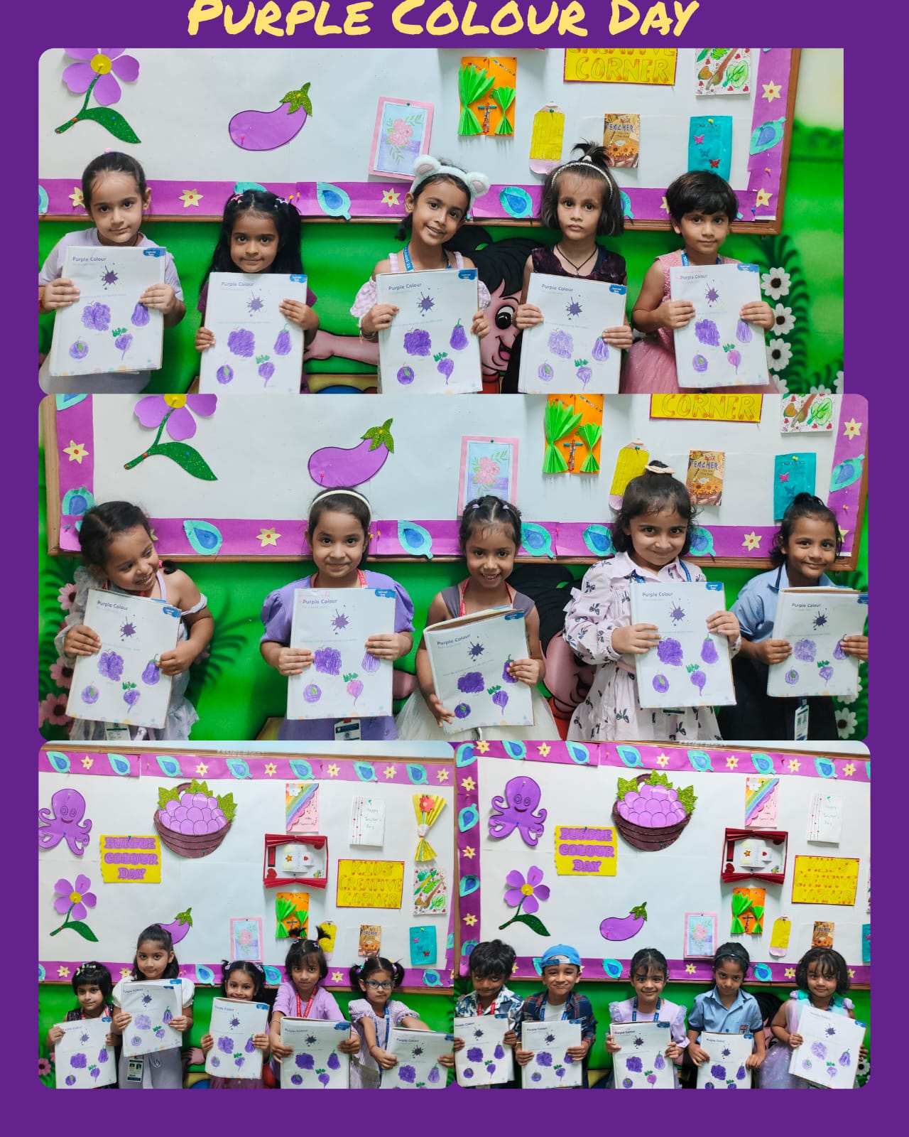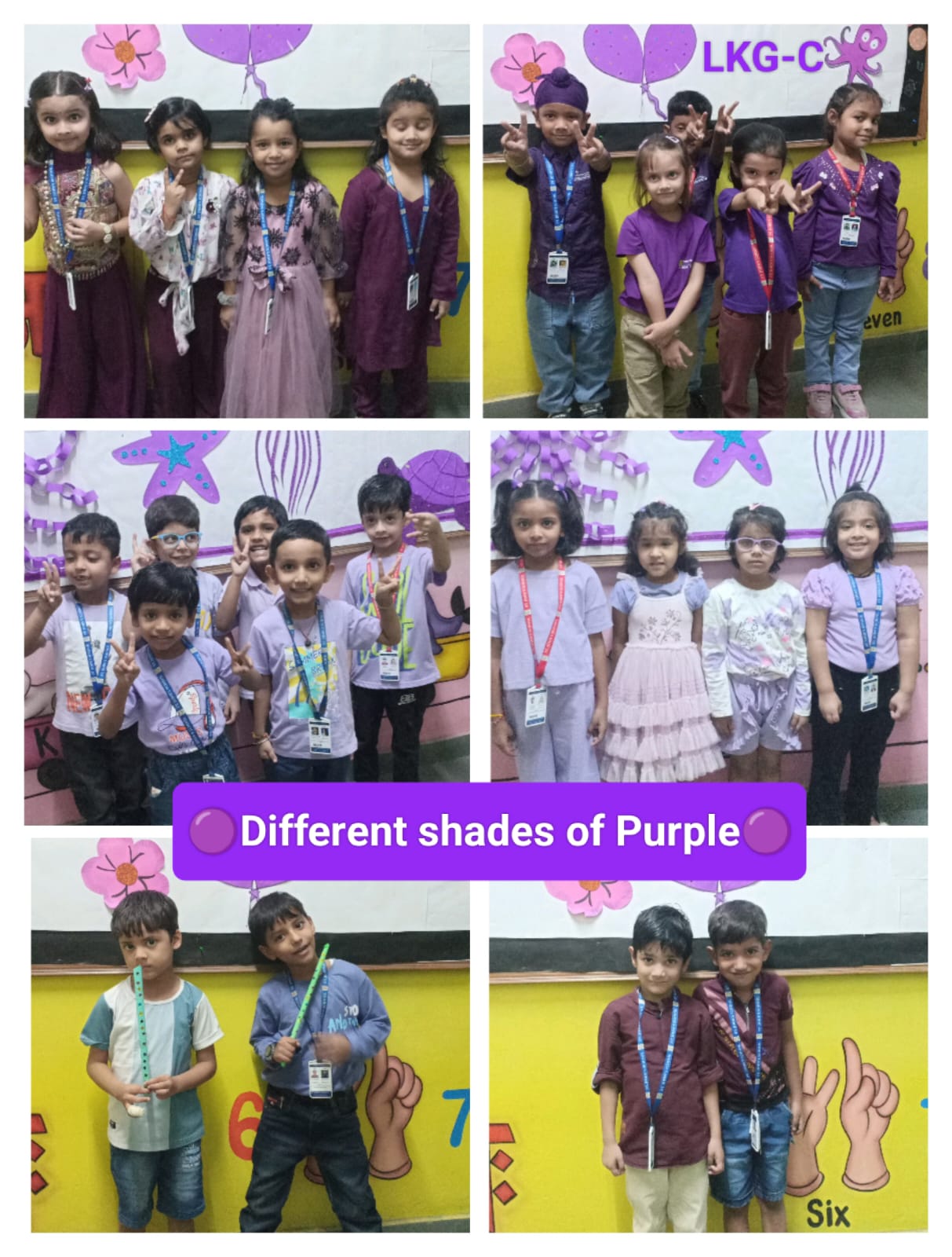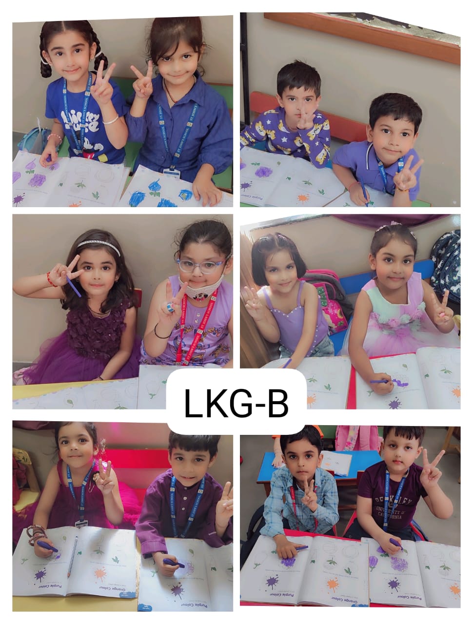 LKG students decorated colourful dandiya sticks and did colouring on purple objects.