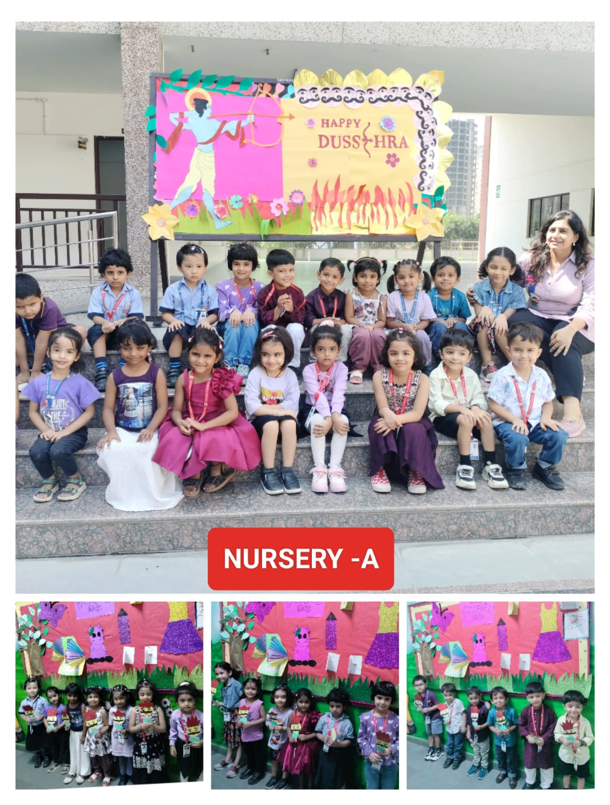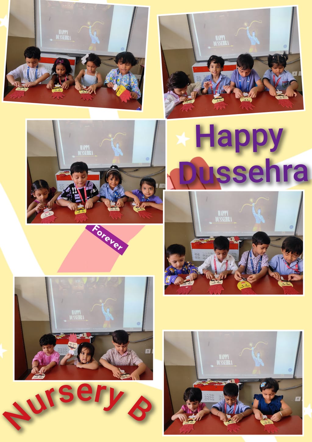 Nursery students crafted Ravana’s face and enjoyed tearing-and-pasting on an eggplant.