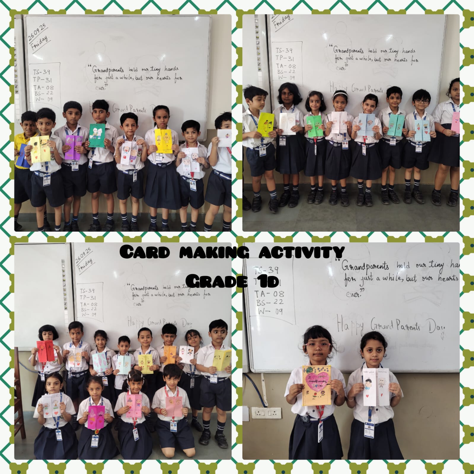 Grandparents are the guiding stars in our lives – they fill our world with love, wisdom, and countless stories. To honour their unconditional affection and the special bond they share with grandchildren, we celebrated Grandparents Day with a heartfelt Card Making Activity. Today on (26.09.25), Friday the students of class 1 and class 2 made beautiful cards for their grandparents with the materials brought by them.