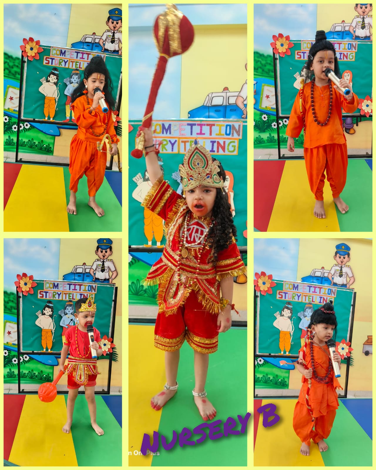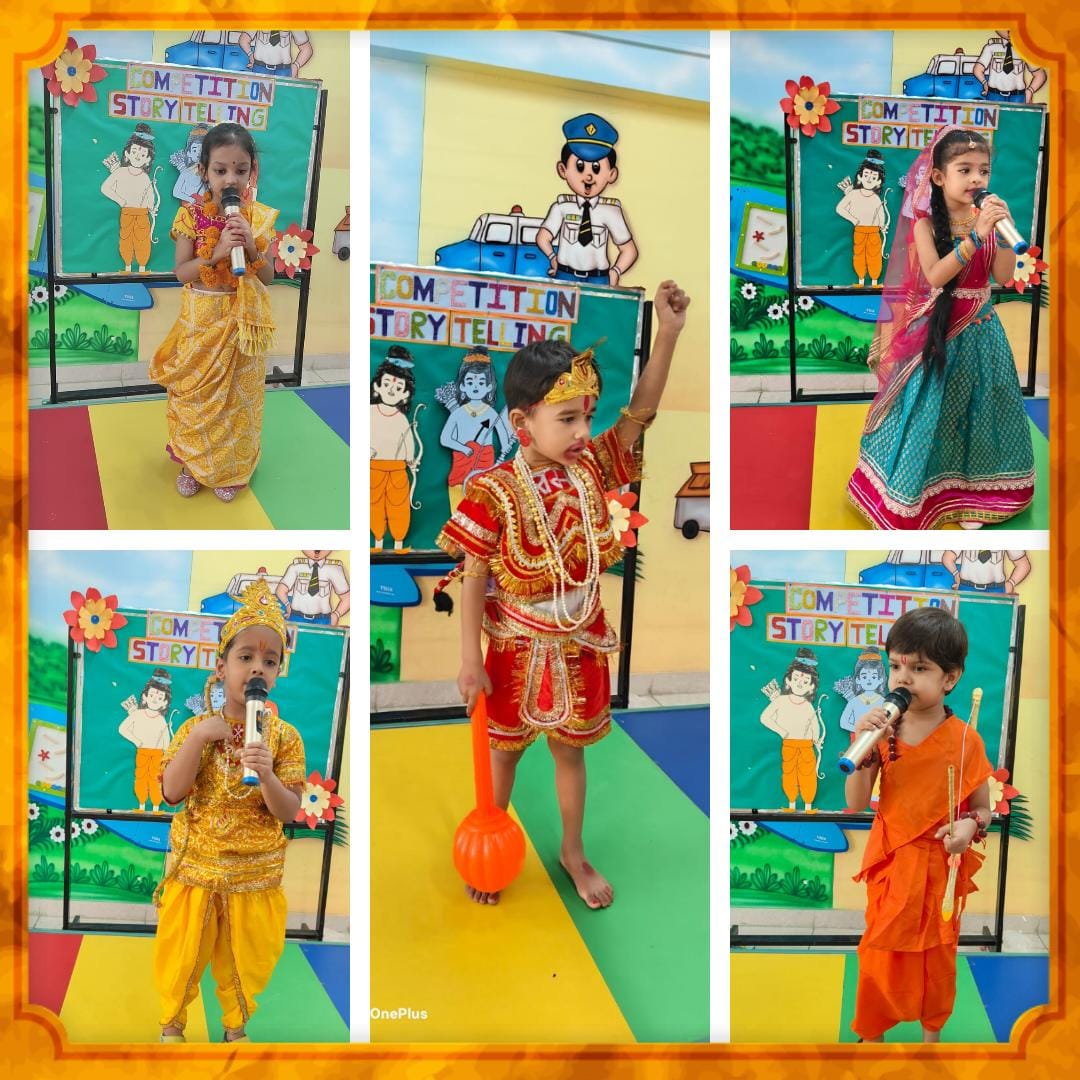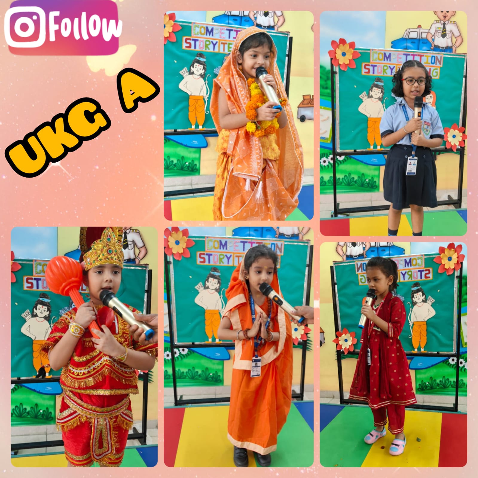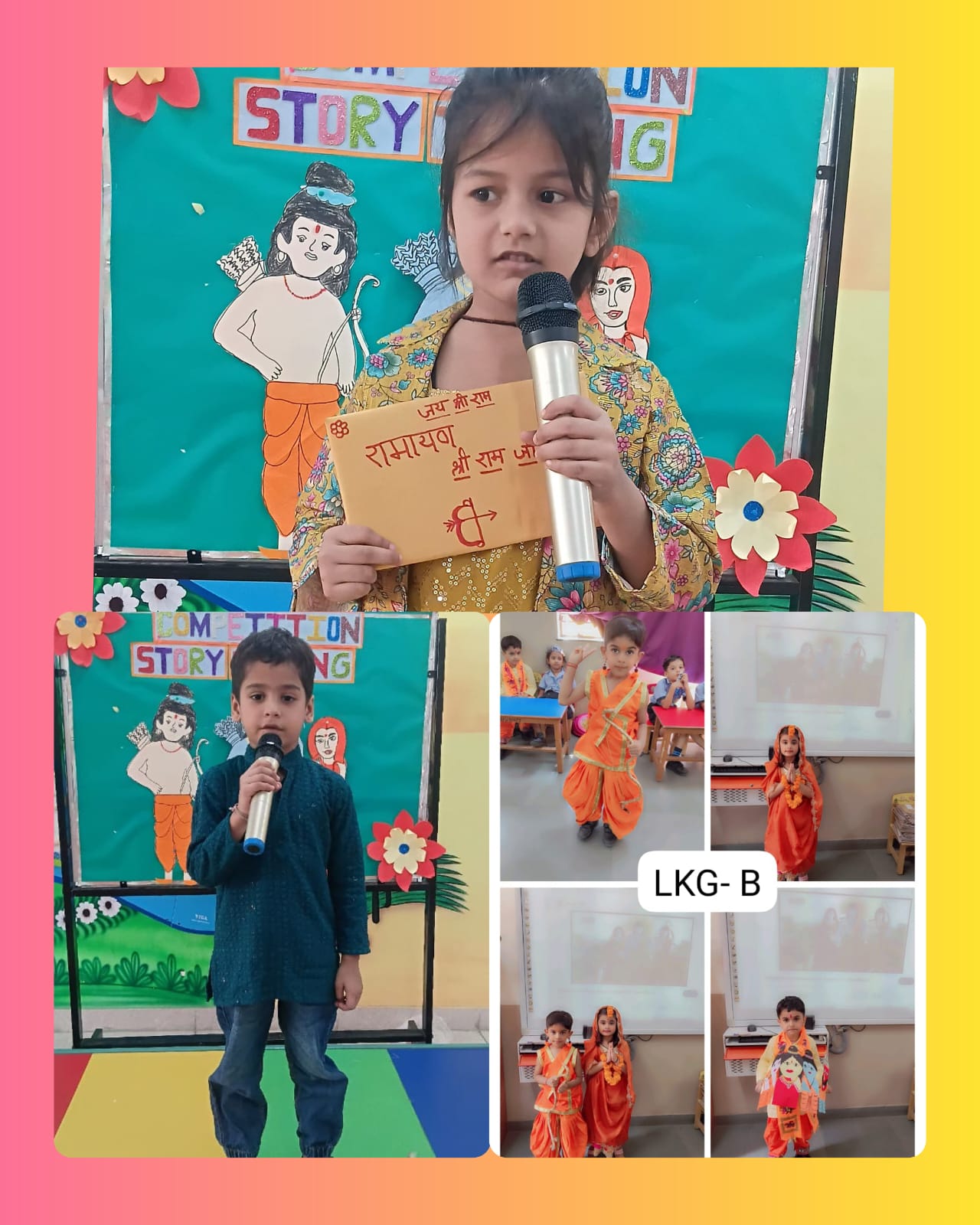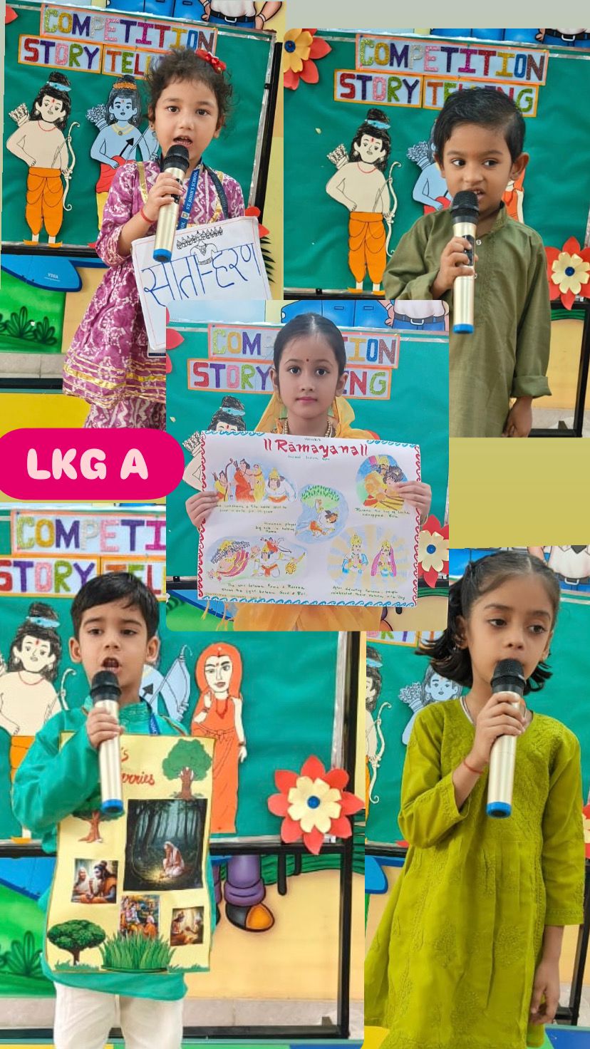The LKG and UKG students showcased their talent through storytelling based on the Ramayana. With the help of expressive narration and creative props, they narrated stories that conveyed morals of truth, devotion, and bravery.