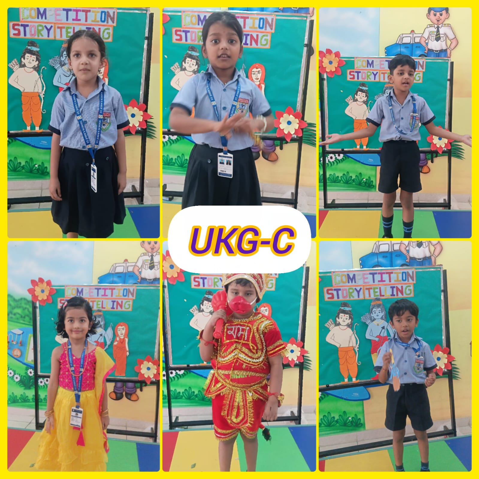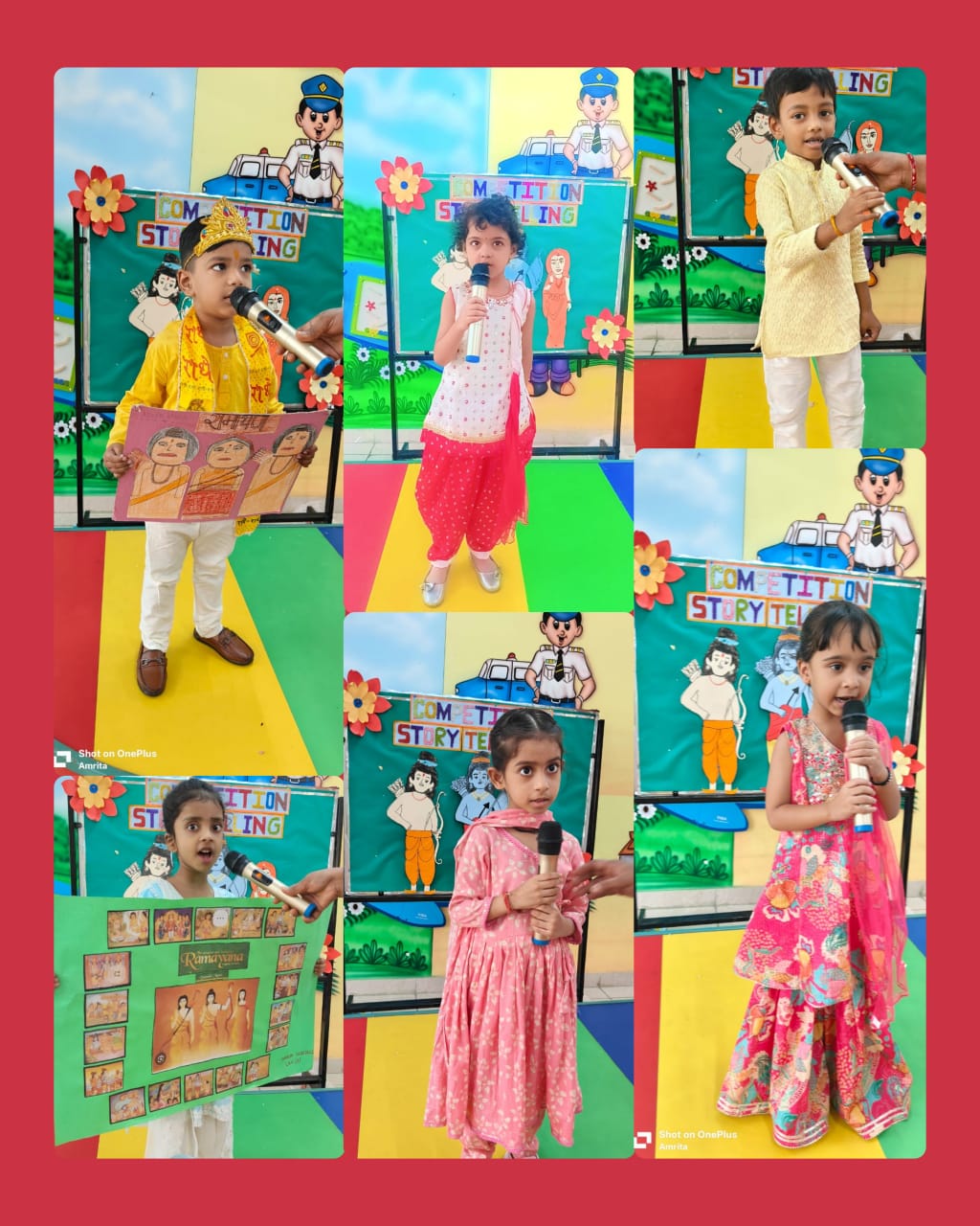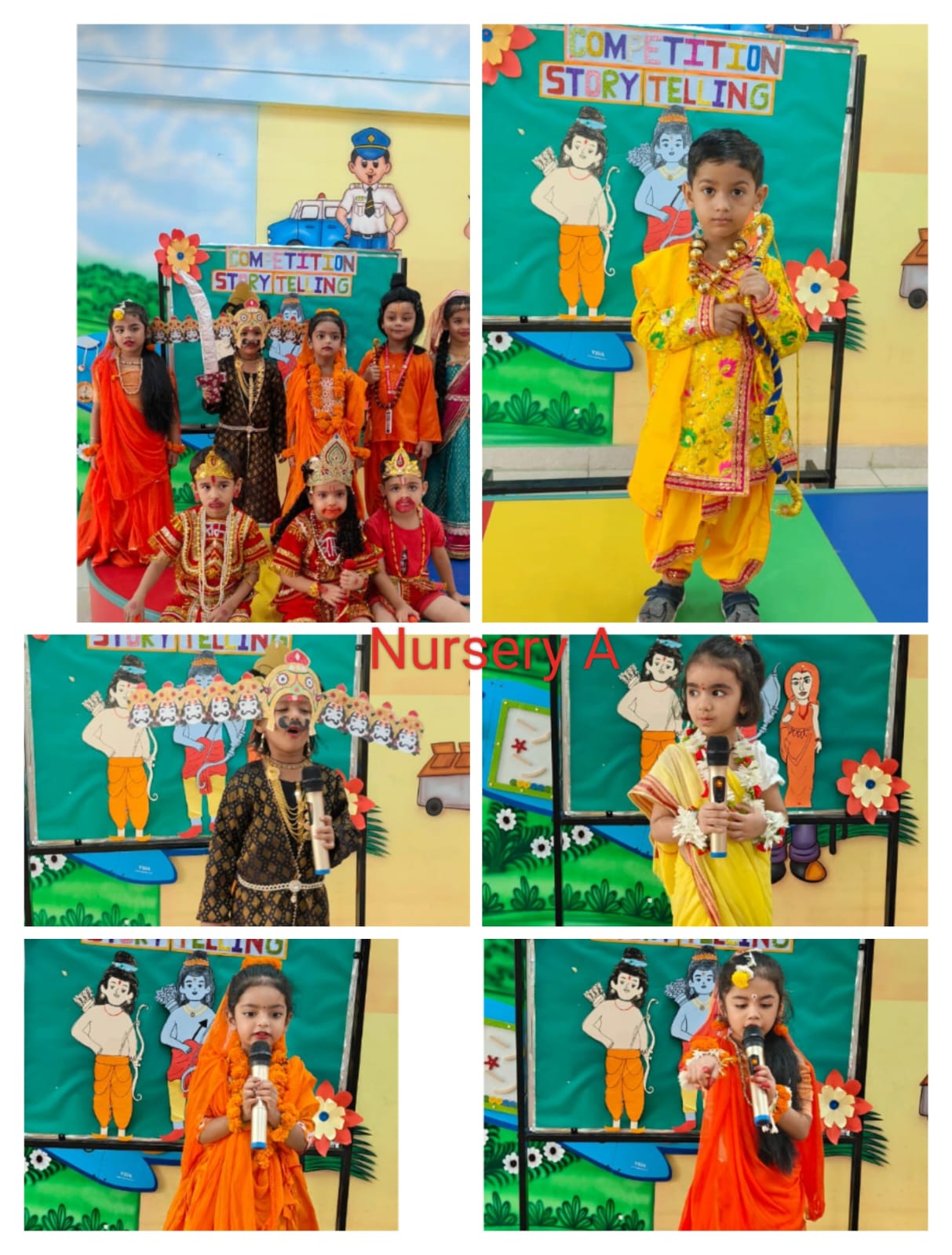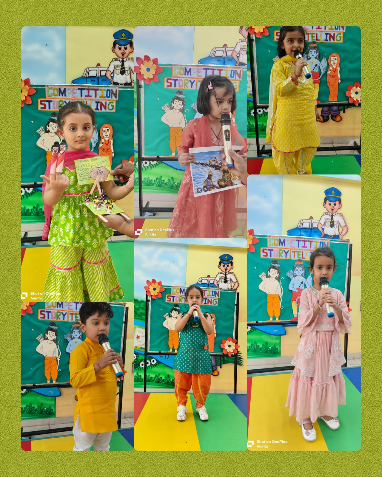 The LKG and UKG students showcased their talent through storytelling based on the Ramayana. With the help of expressive narration and creative props, they narrated stories that conveyed morals of truth, devotion, and bravery.