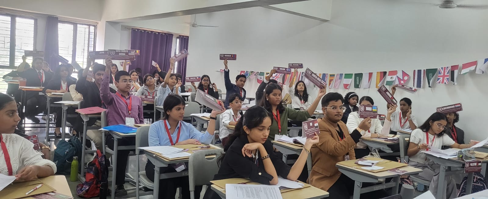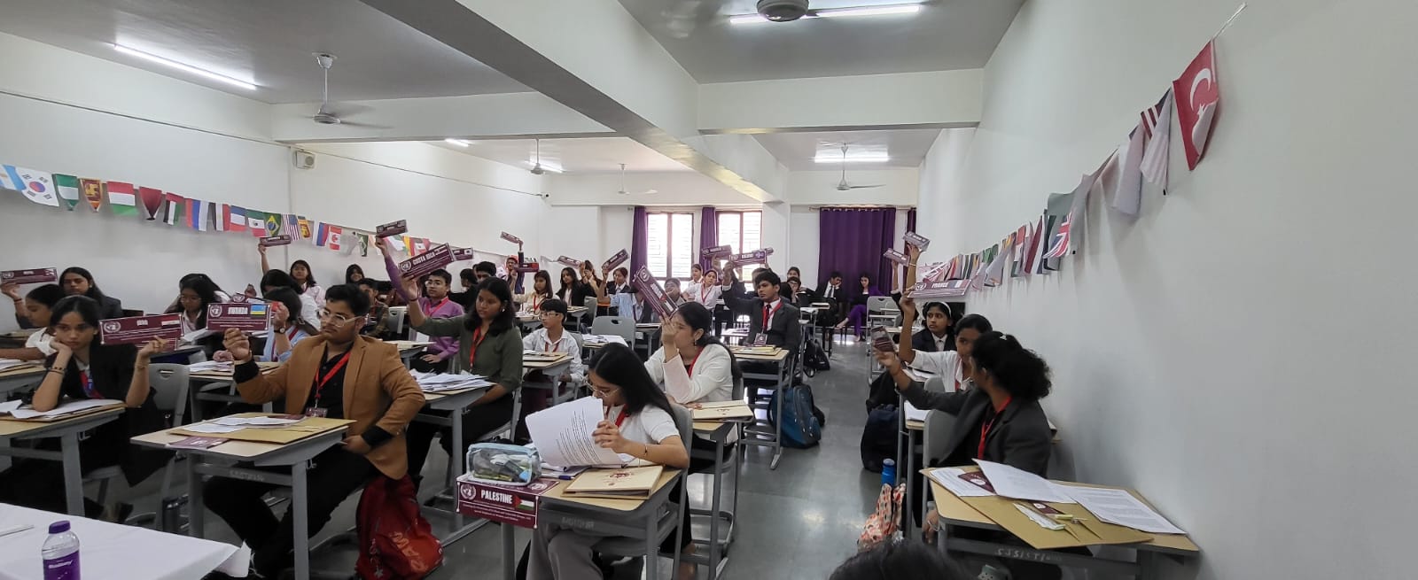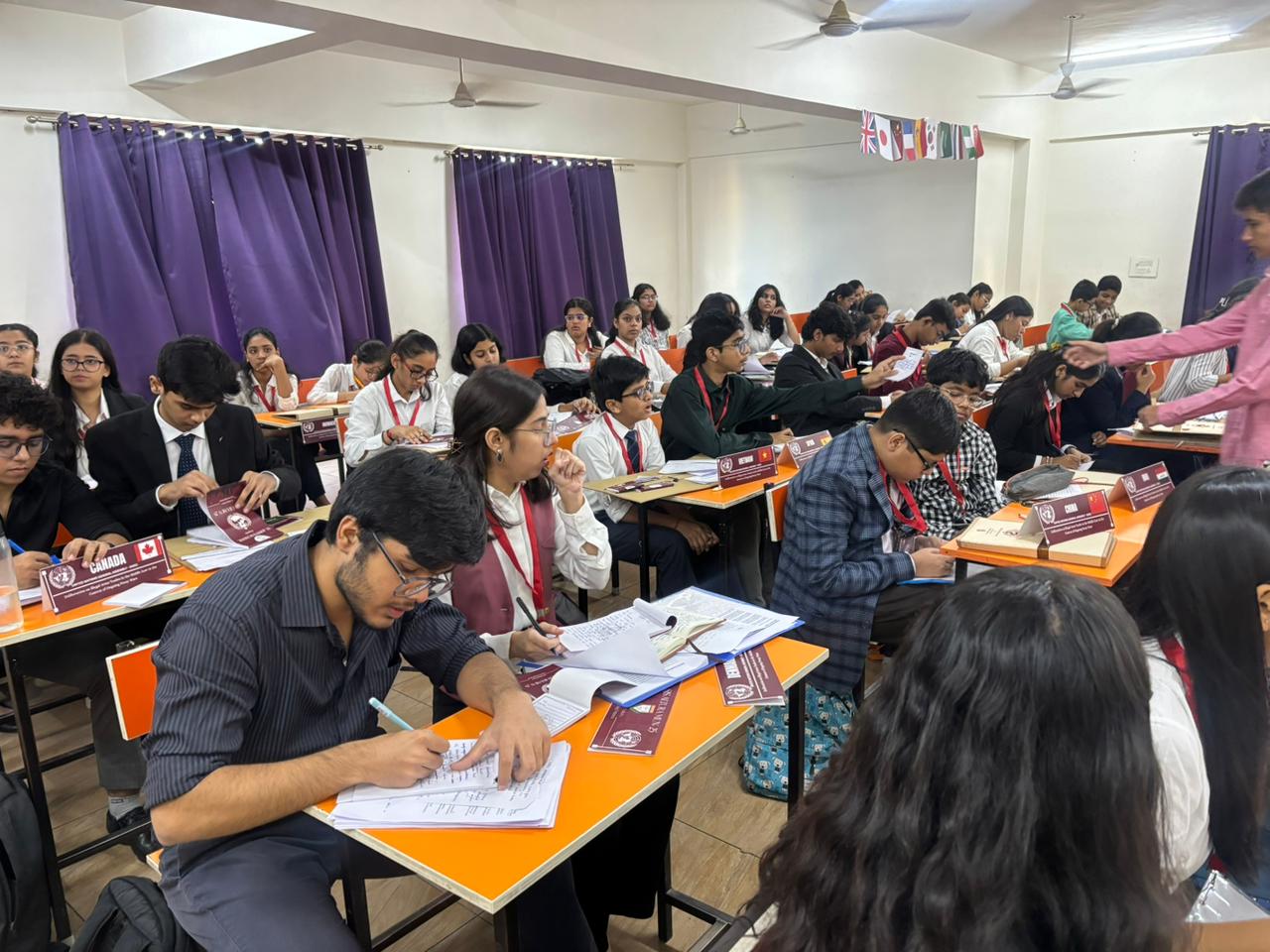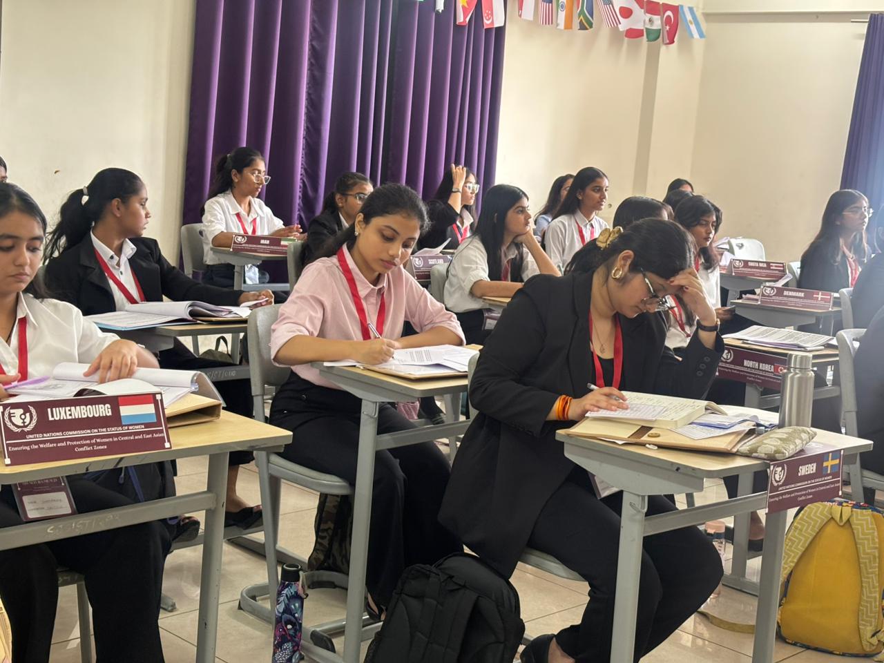 The Organising Committee, comprising class 11 and 12 students - Abhishek (Secretary-General), Charvee (Deputy Secretary-General), Avni (Logistics), Sara (Social Media), Akshita (Organising Committee), Naitik, Lakshay, Ishika, Shanaya, Vidushi, and Bhavy (Committee Heads), along with the faculty coordinators, worked tirelessly to bring this vision to life.