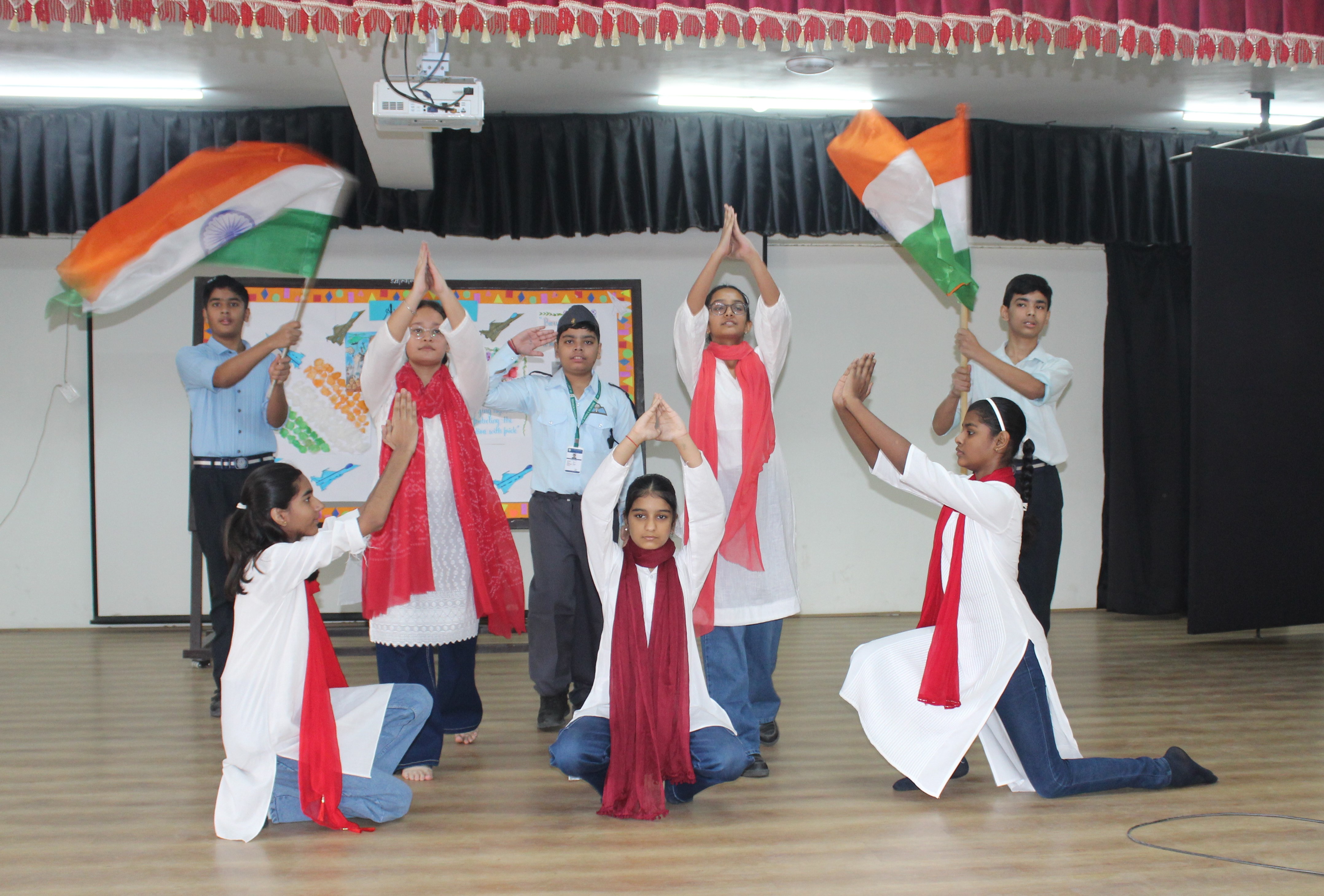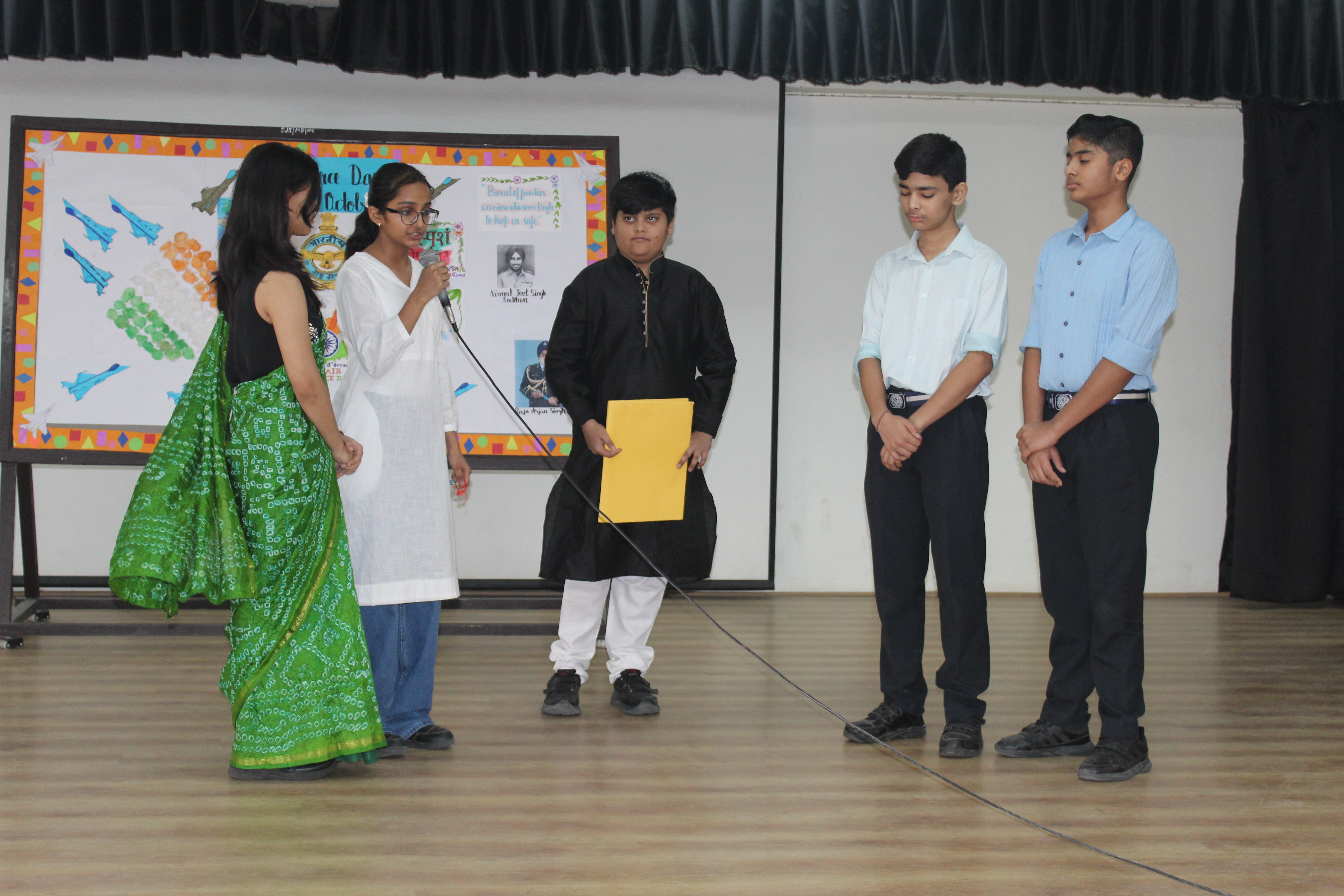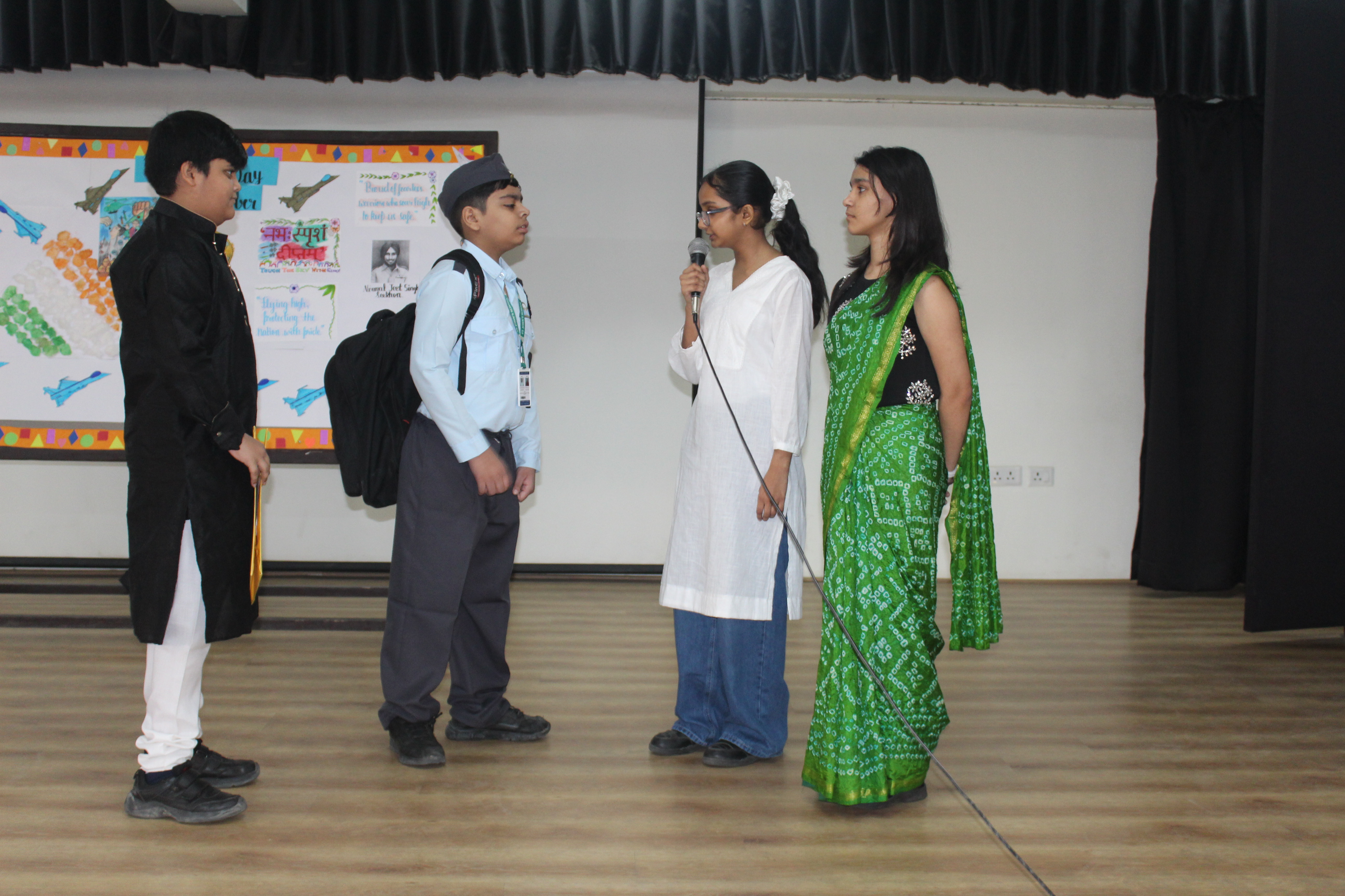 The celebration began with a special assembly highlighting the glorious history and achievements of the Indian Air Force. Students presented inspirational speeches, patriotic songs, and skits showcasing the valour and discipline of our air warriors. The atmosphere was filled with national pride as the school echoed with the spirit of patriotism.