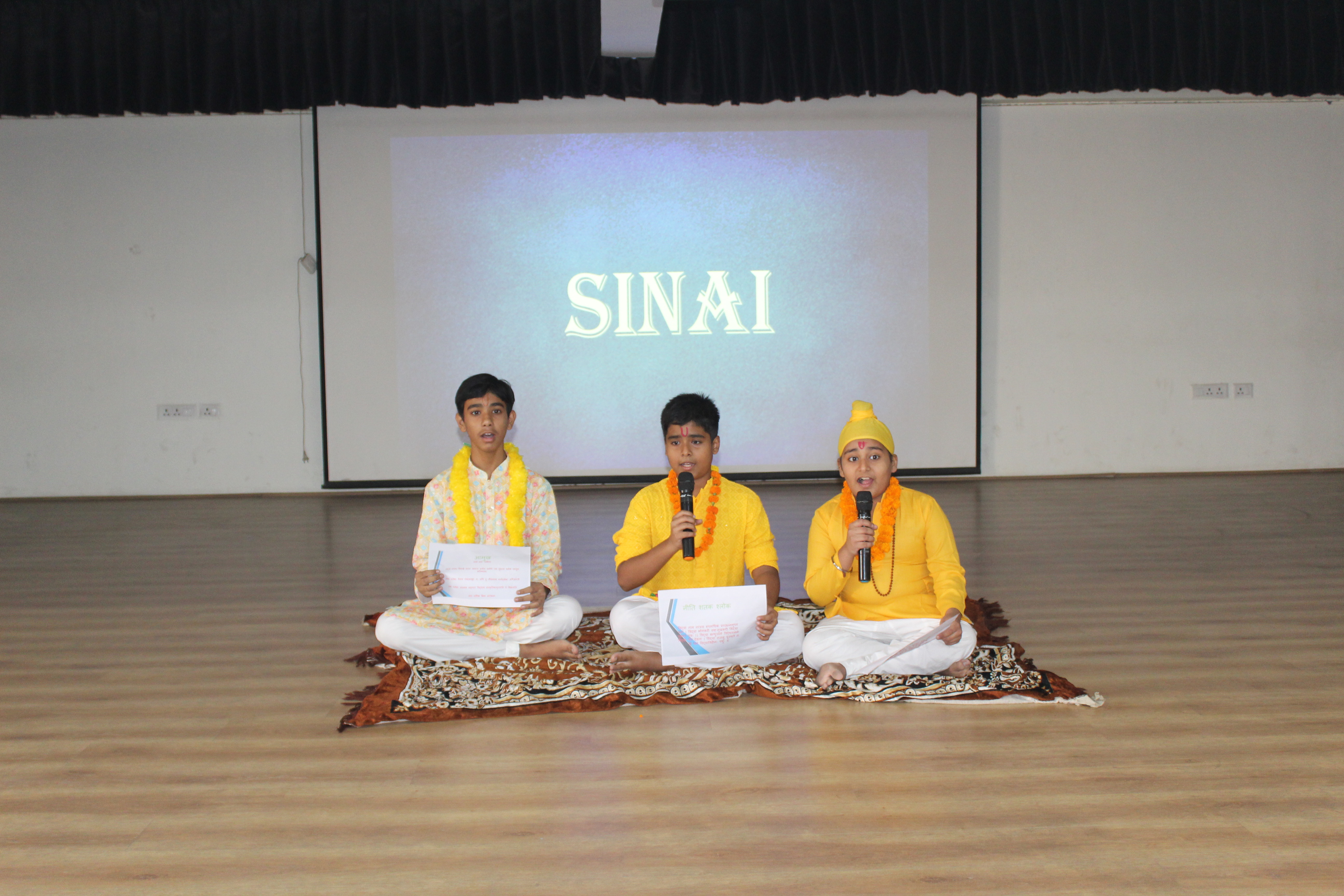 The students beautifully recited selected Sanskrit shlokas, showcasing excellent pronunciation, confidence, and expression. Each participant reflected a deep understanding of the verses, creating a serene and spiritual atmosphere in the auditorium.