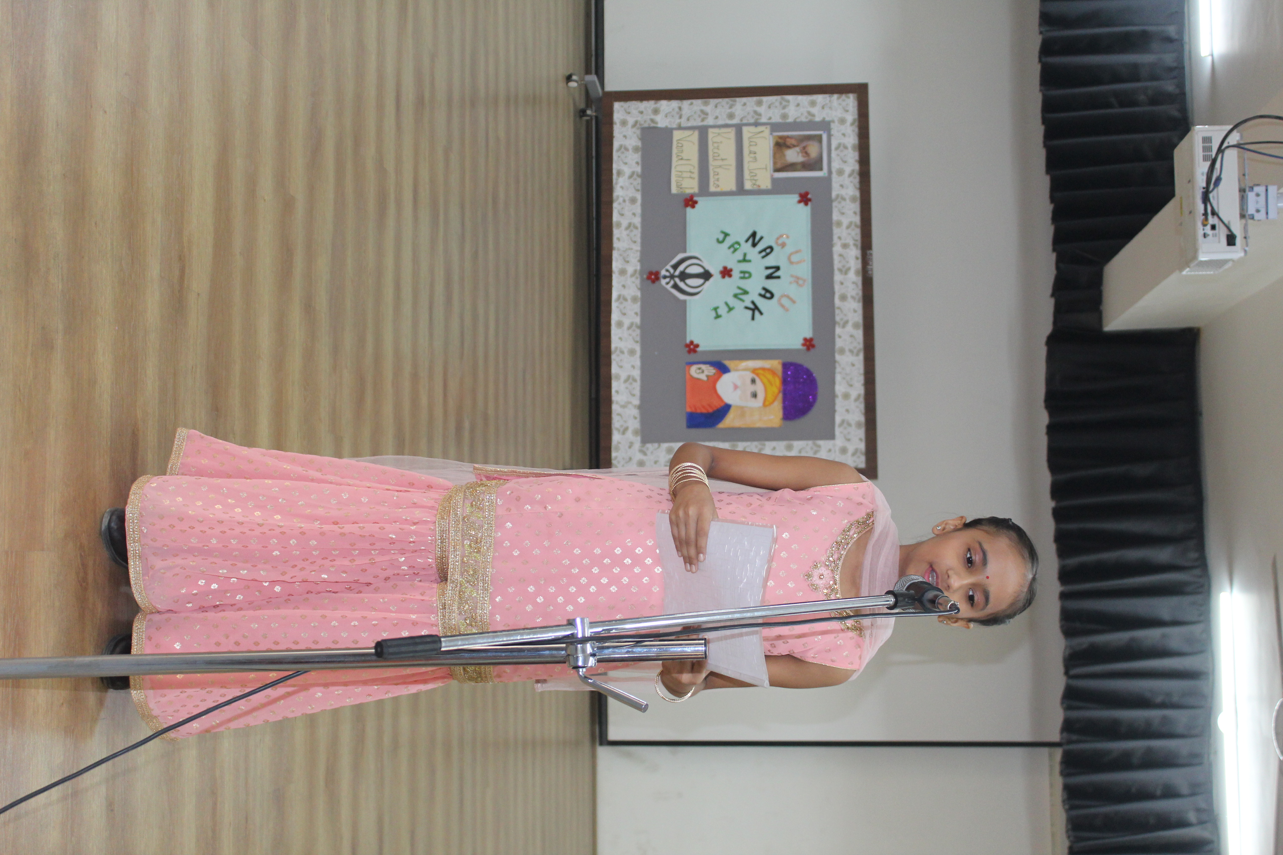 The celebration continued with a Prabhat Pheri performed by the children, spreading the message of peace and harmony through melodious shabads. This was followed by an inspiring speech on the life and teachings of Guru Nanak Dev Ji, reminding everyone to walk on the path of truth, equality, and service to humanity. A beautiful dance performance by the students added colour and joy to the celebration.