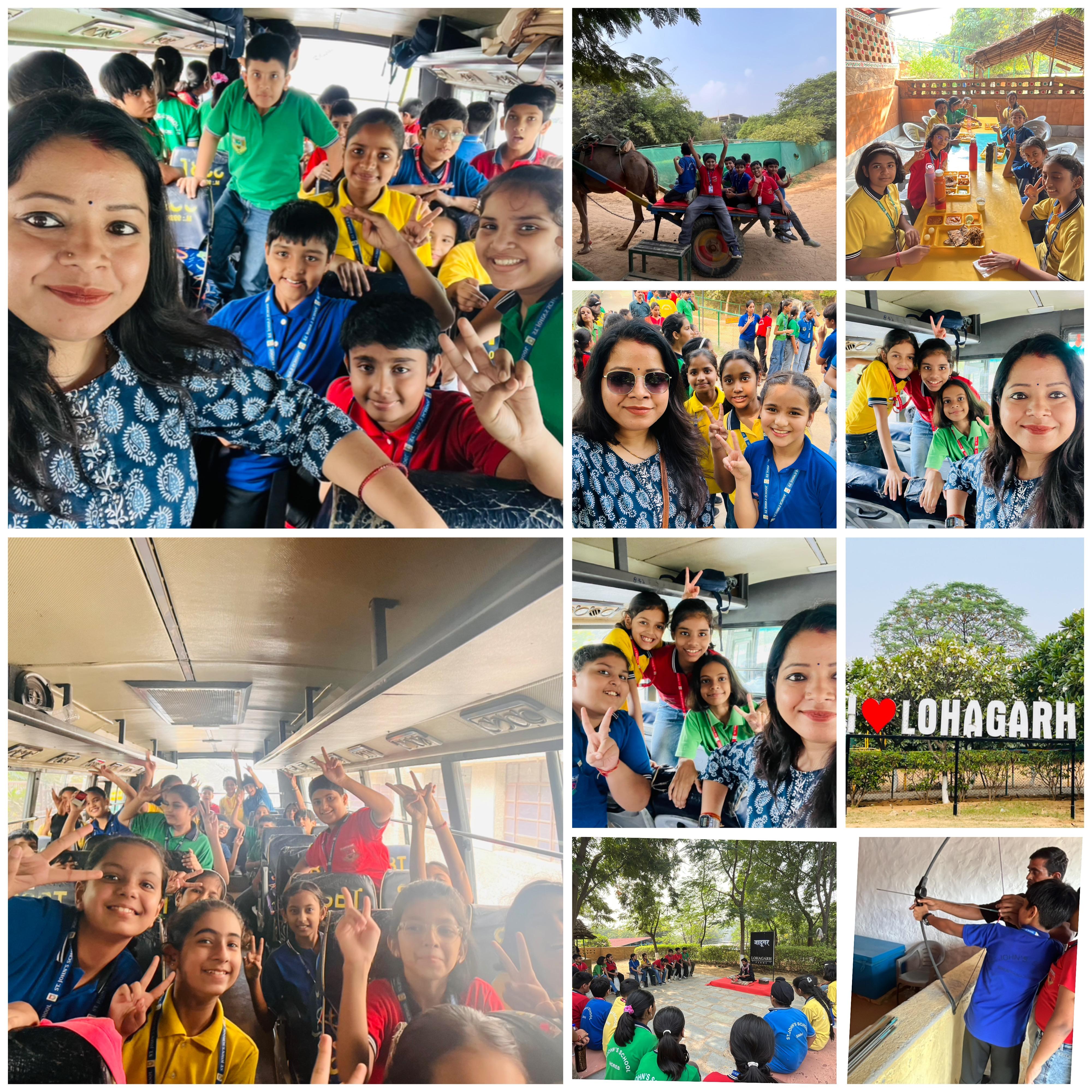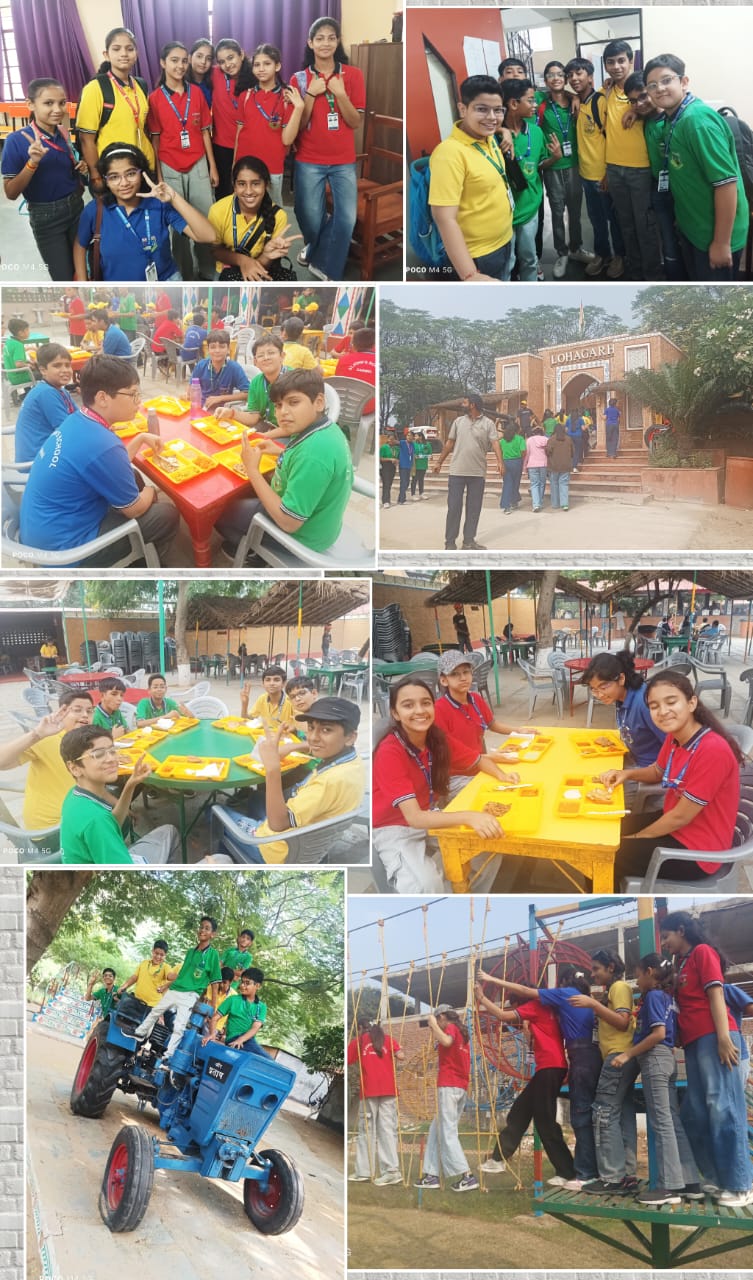 Lohagarh Farms, known for its blend of rural charm and adventure, offered students an immersive experience of village life through activities like pottery making, bullock cart rides, camel rides, and archery. They also participated in team-building games, tug-of-war, and adventure sports, showcasing teamwork, leadership, and cooperation.