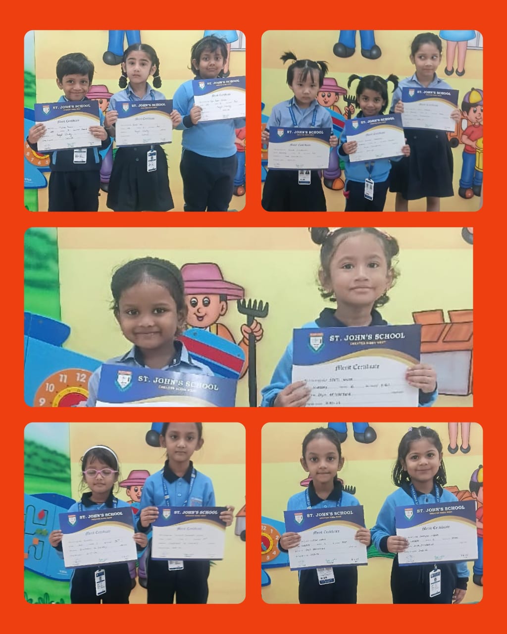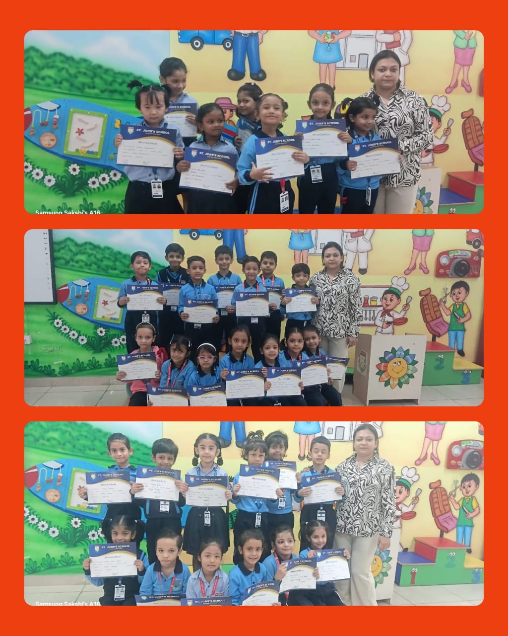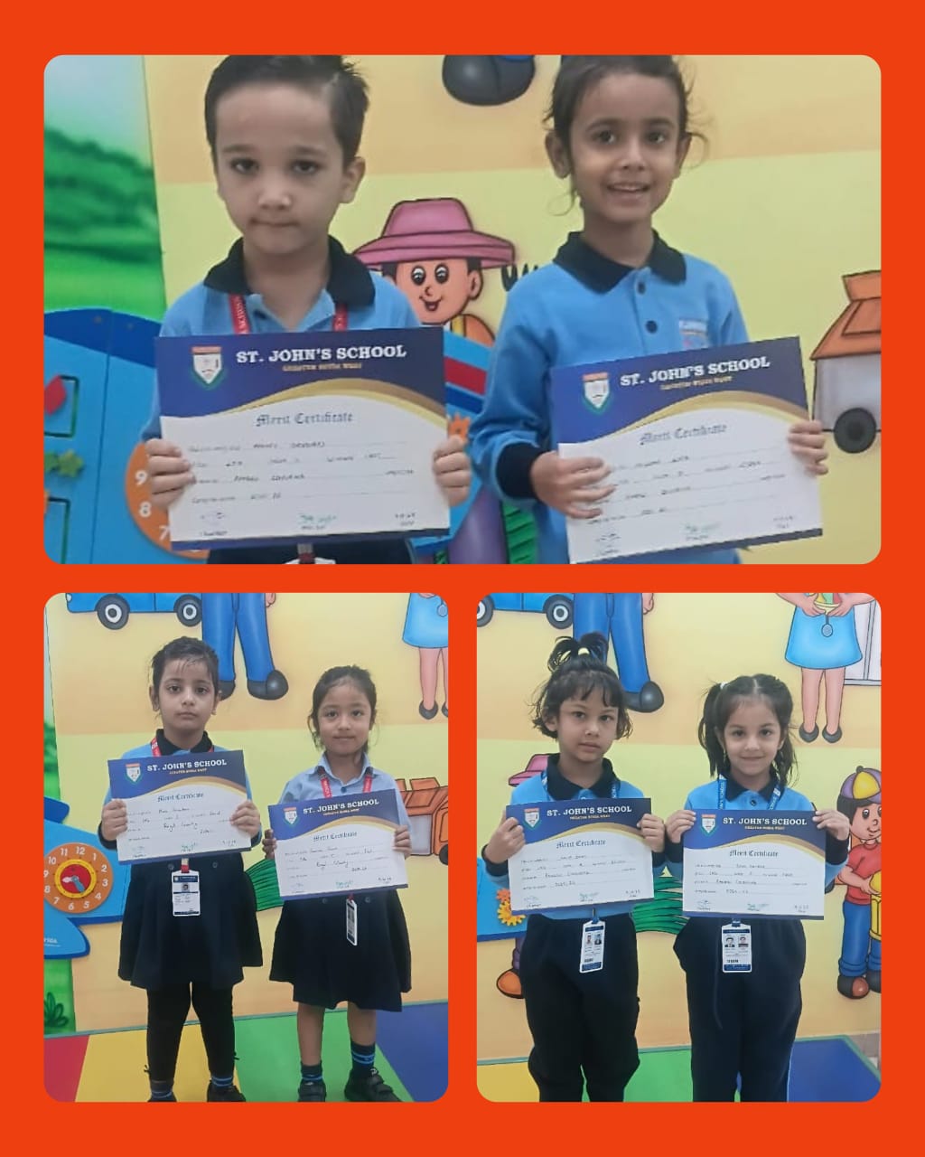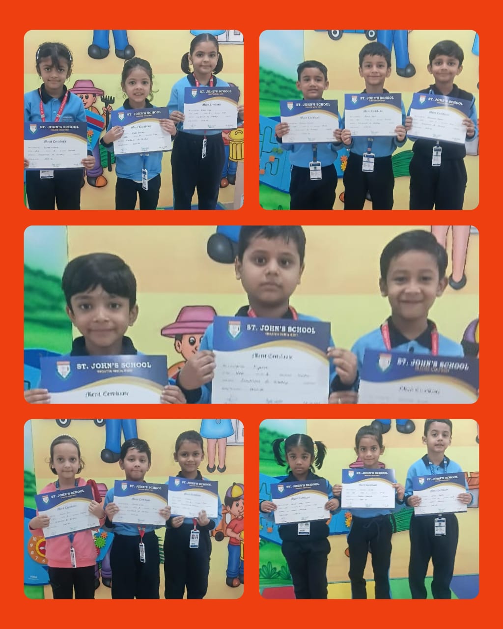 A Certificate Distribution Ceremony was organized at St. John’s School, Greater Noida West, on 4th November 2025 (Tuesday) to felicitate the winners of the recently held competition. The event celebrated the creativity, confidence, and enthusiasm of the kindergarten students.