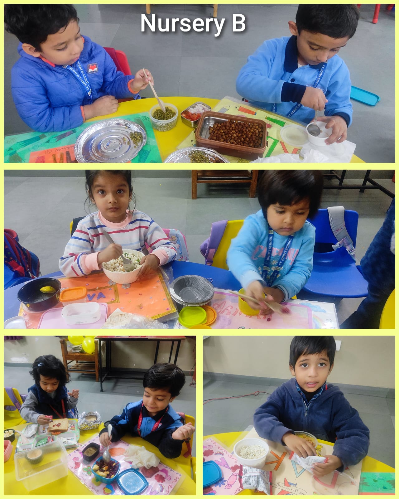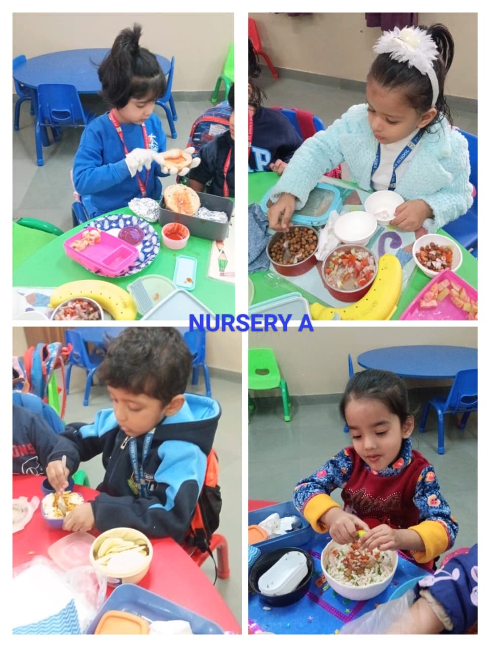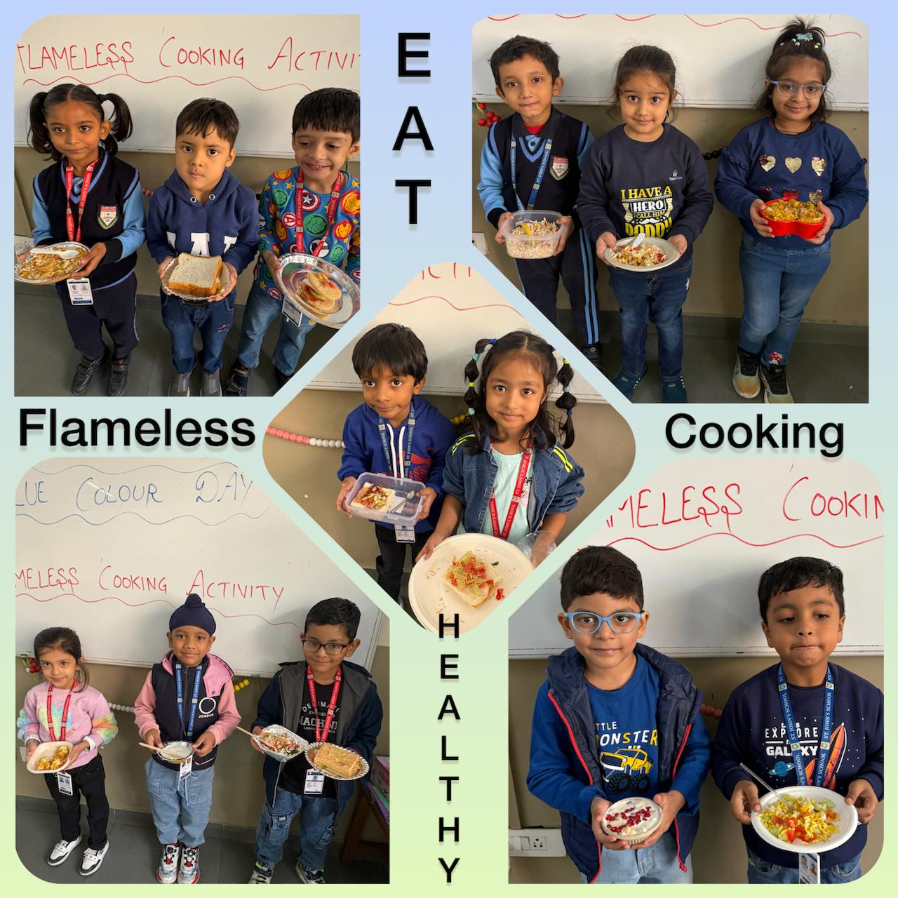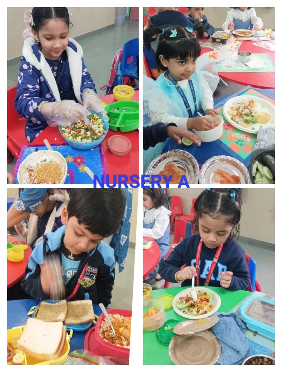 The day began with an exciting flameless cooking activity, where children prepared delicious sandwiches, crunchy bhelpuri, and other simple treats. They thoroughly enjoyed mixing ingredients and creating their own snacks, turning the activity into a delightful learning experience.