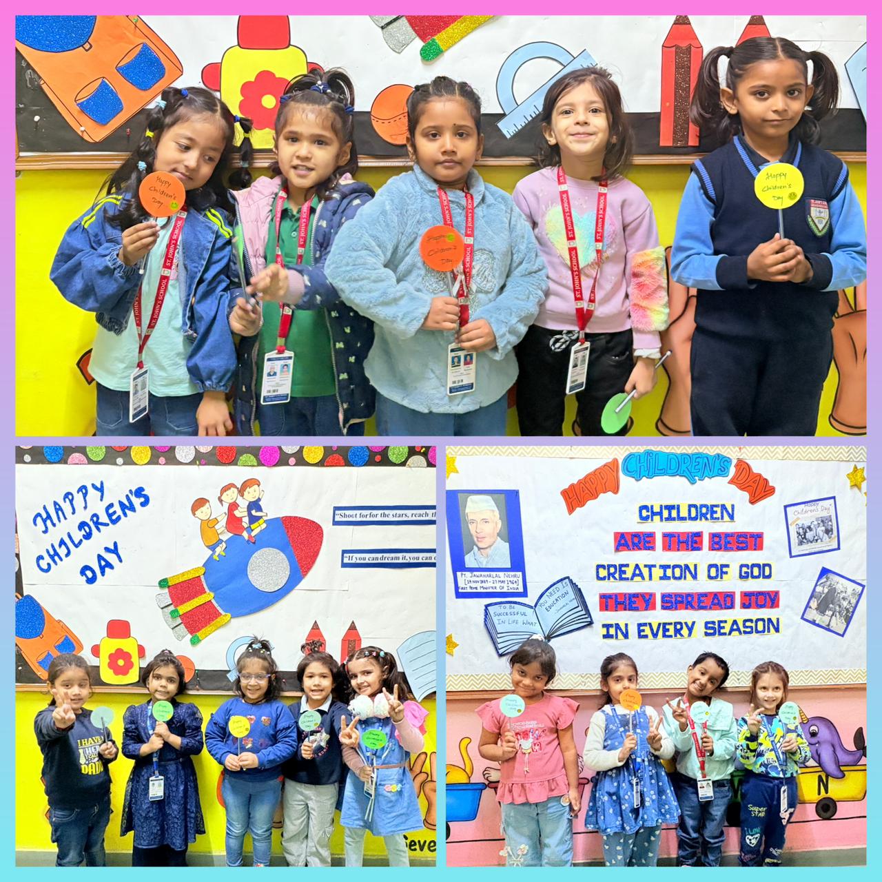 The Kindergarten Department of St. John’s School, Greater Noida West, joyfully celebrated Bagless Day, Blue Colour Day, and Children’s Day on 14th November 2025 (Friday). The little ones arrived in beautiful blue attire, making the entire environment bright and cheerful.