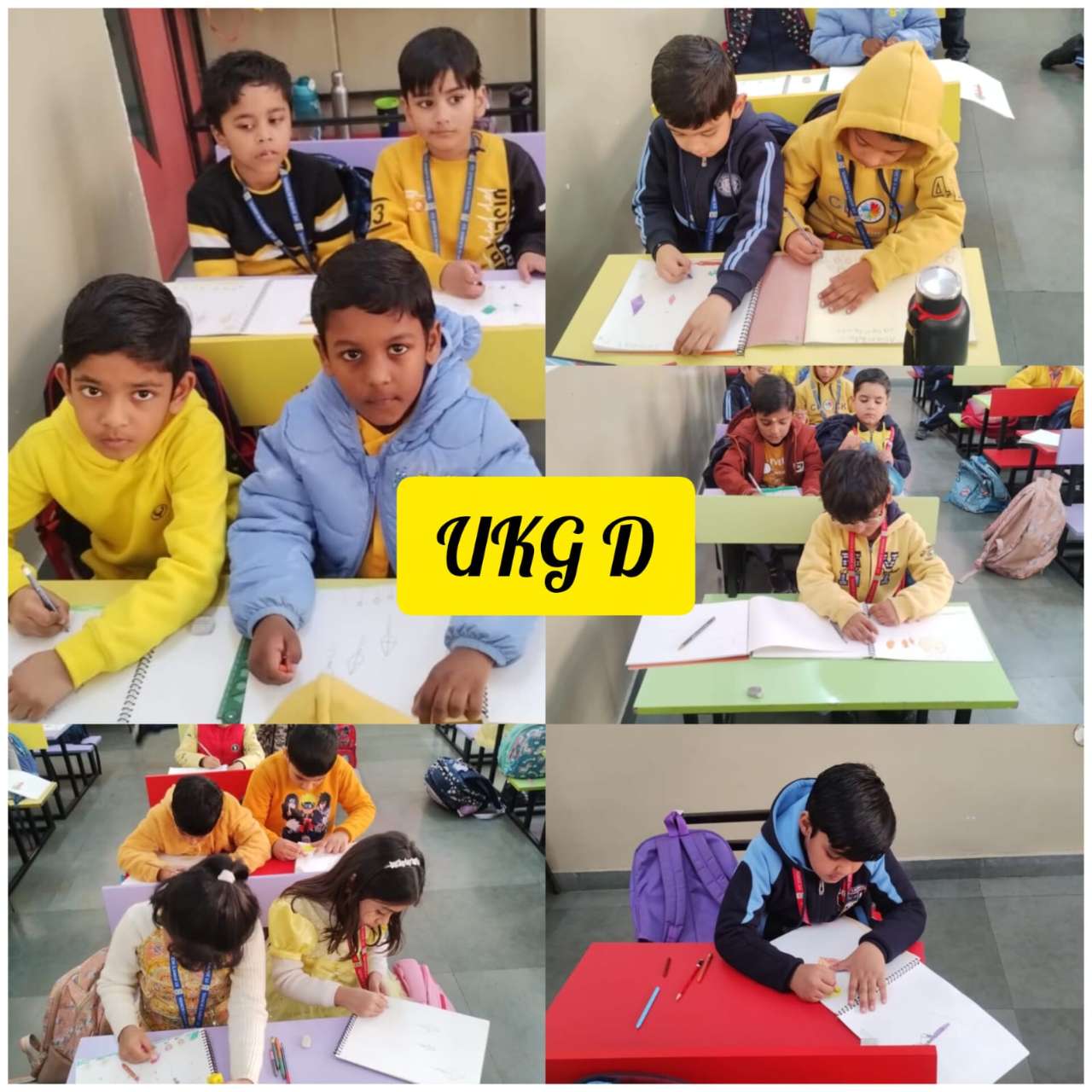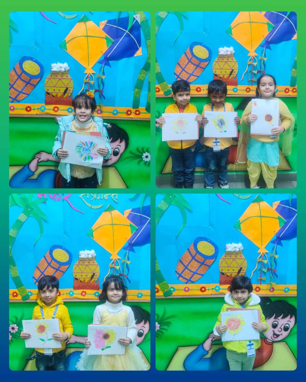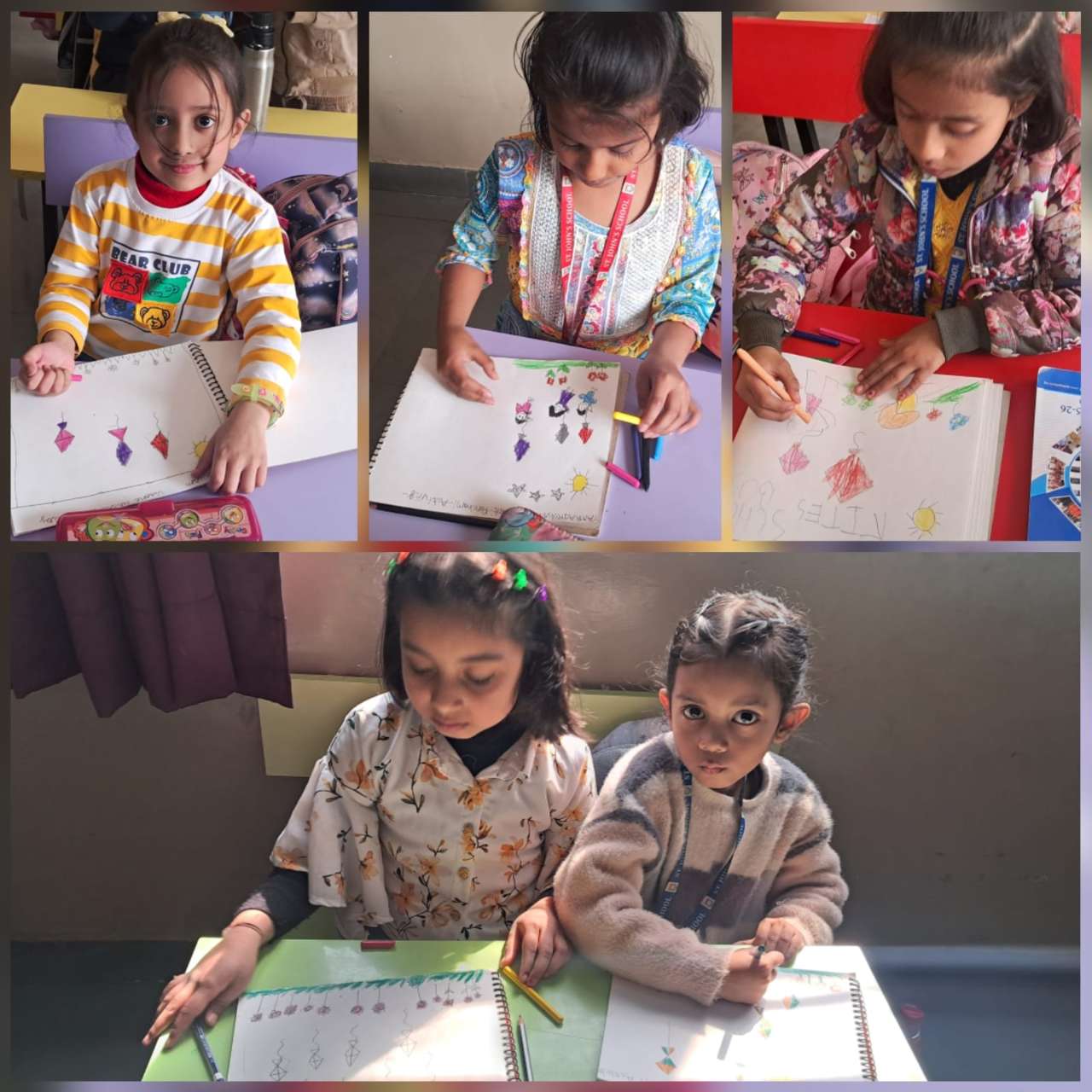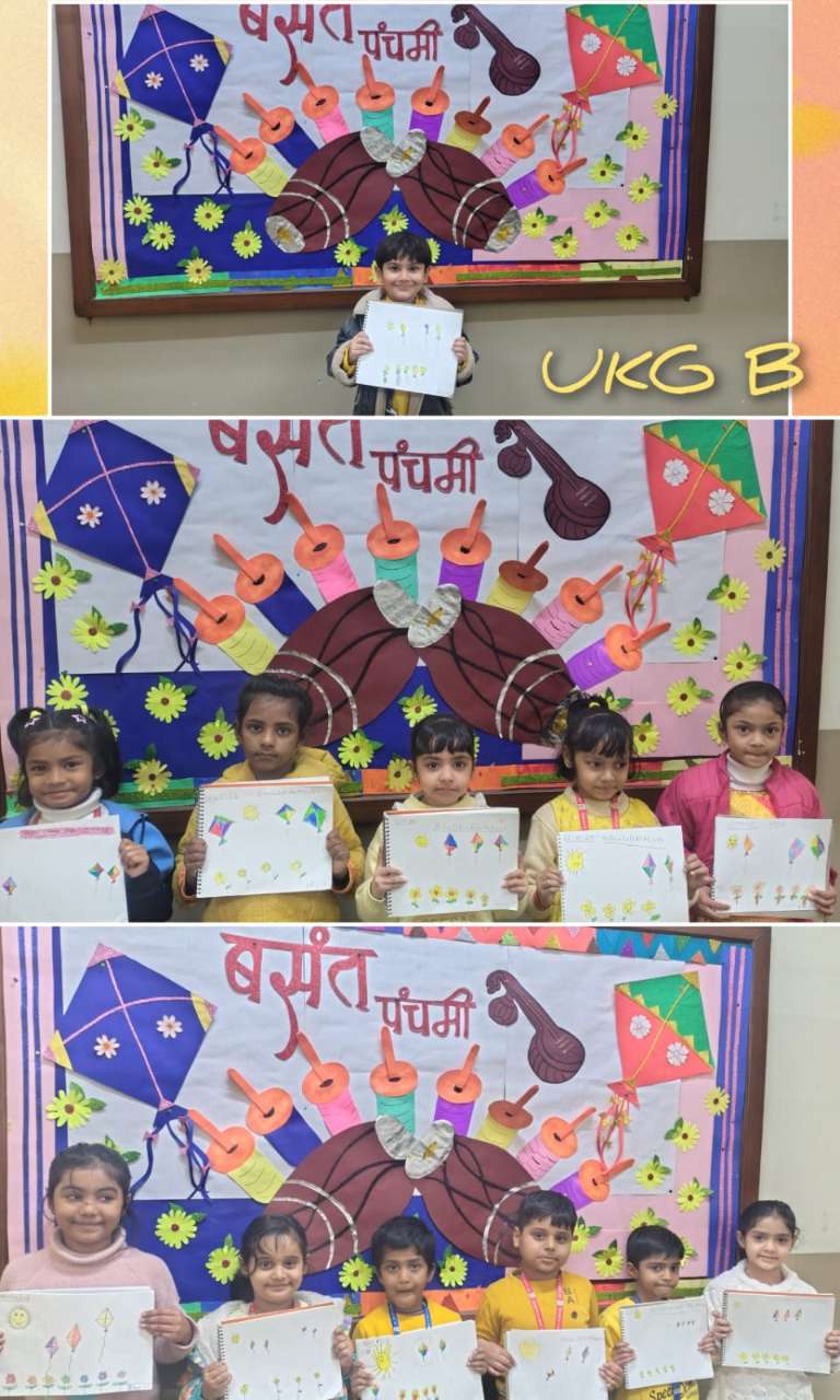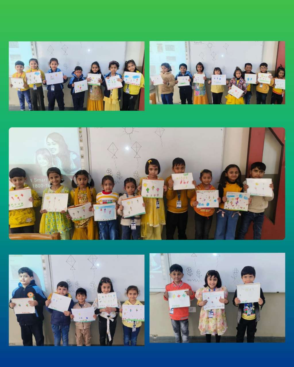 UKG students showcased their imagination by making beautiful drawings of kites and flowers, reflecting the joy of the spring season.