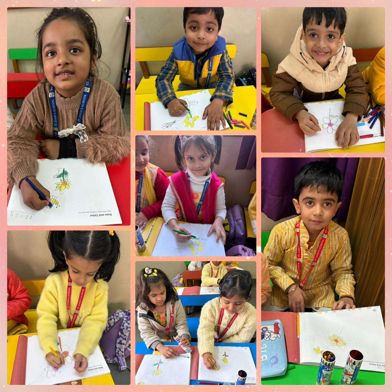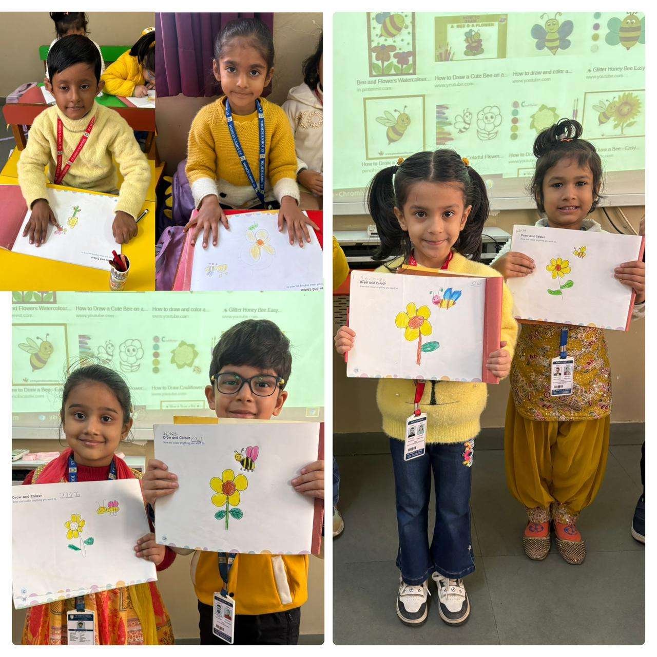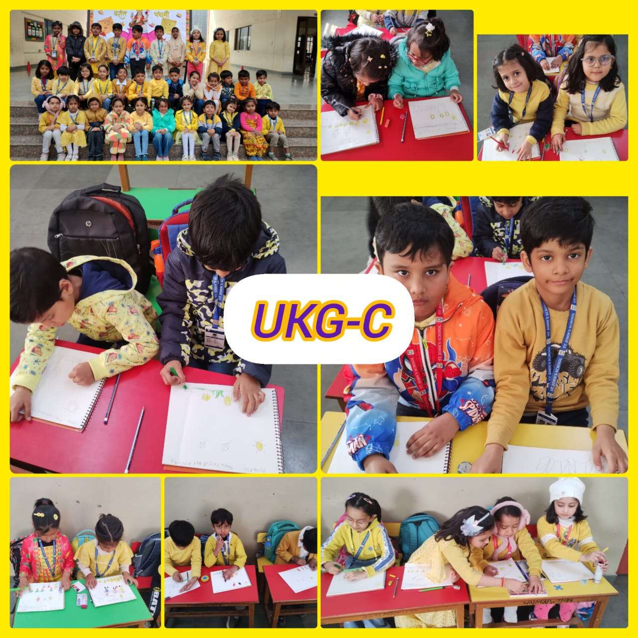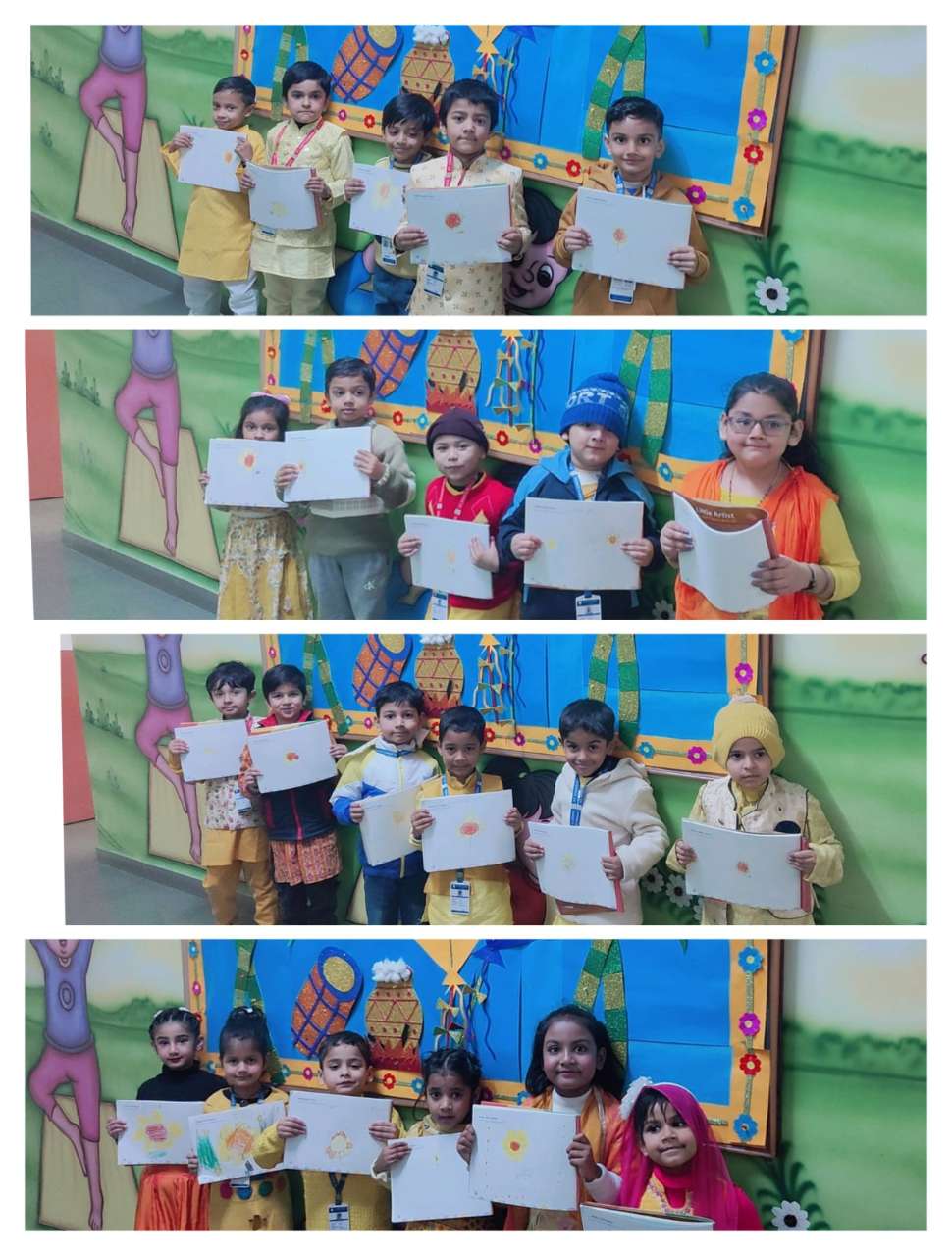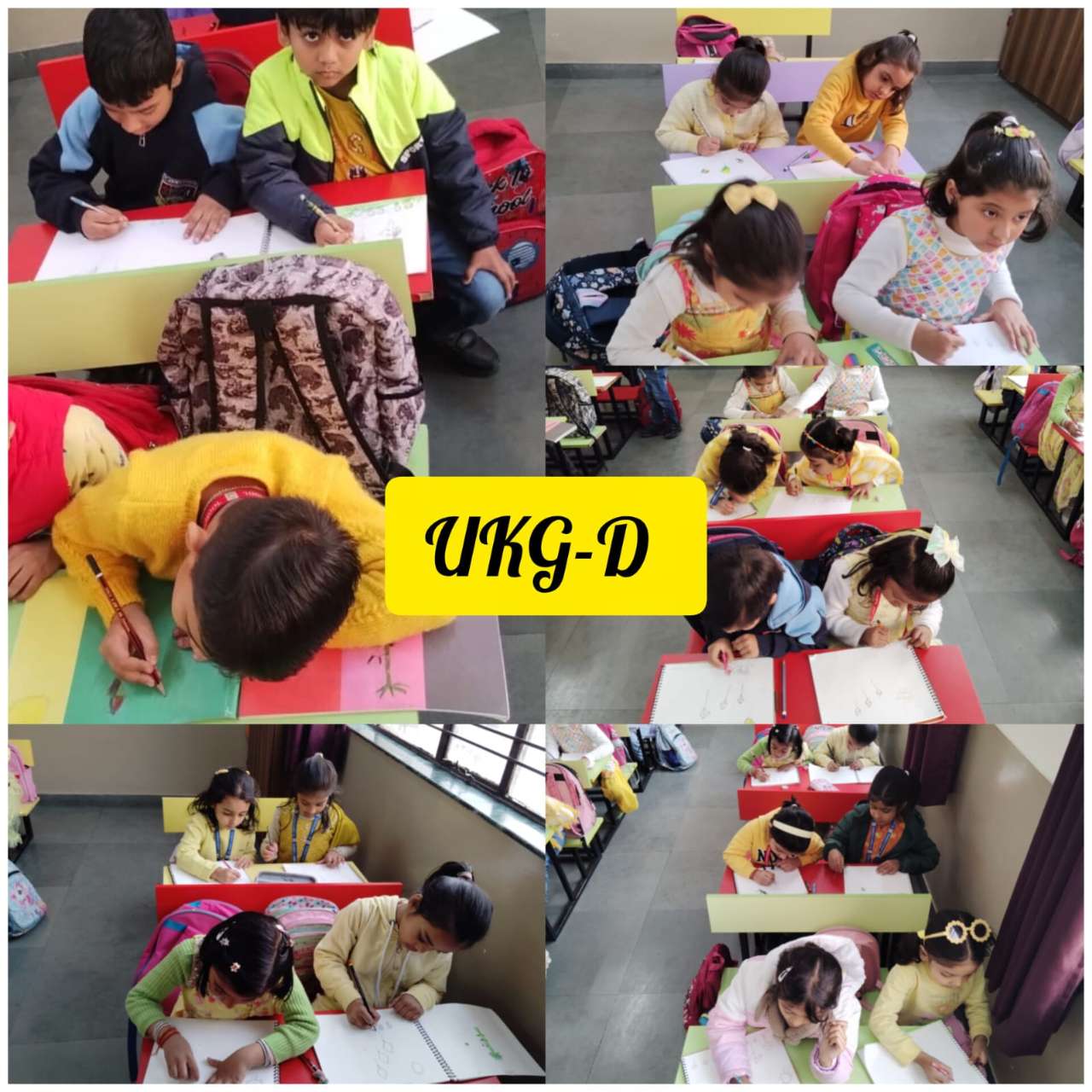 UKG students showcased their imagination by making beautiful drawings of kites and flowers, reflecting the joy of the spring season.