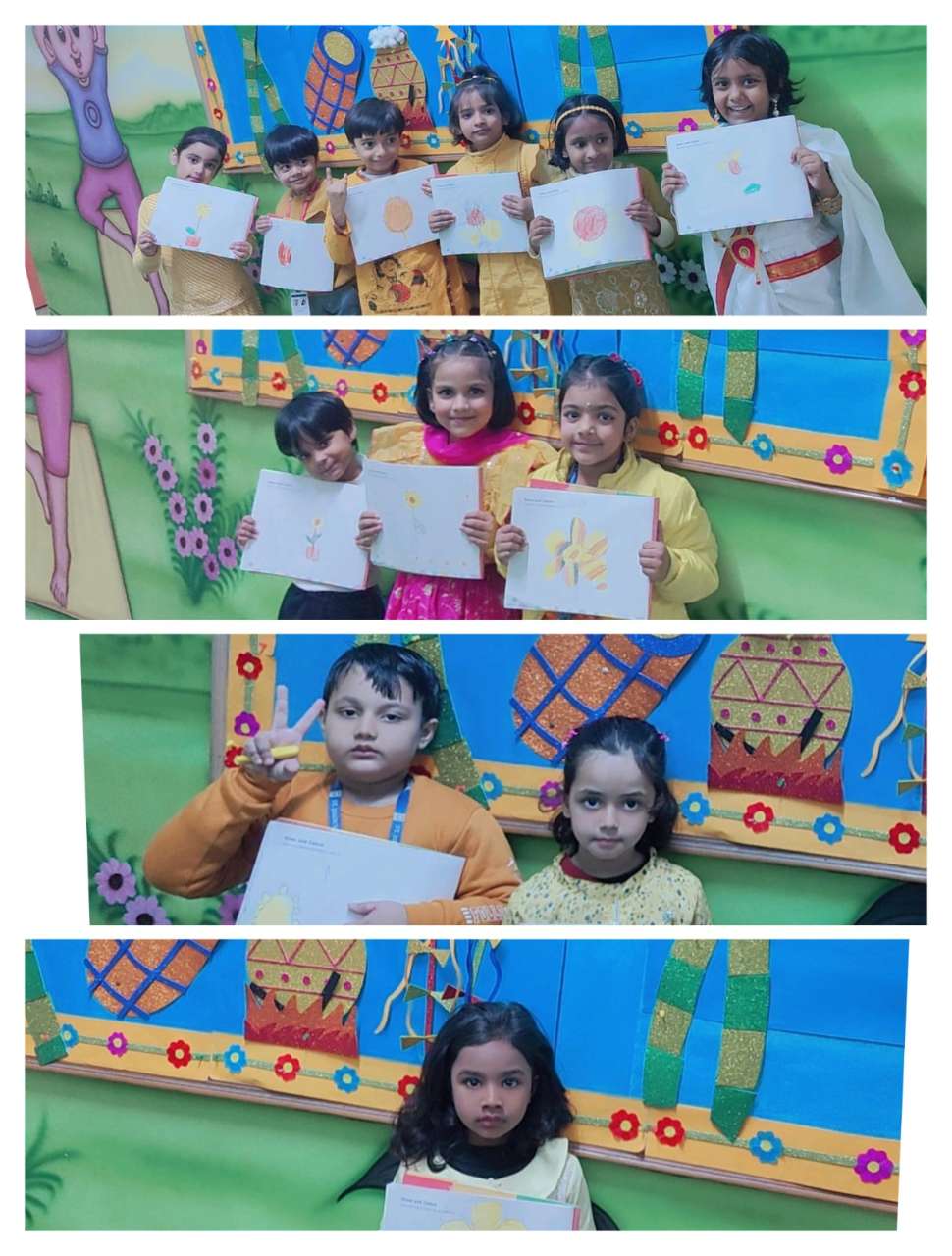 LKG students drew and coloured sunflowers, expressing their creativity with bright shades of yellow.
