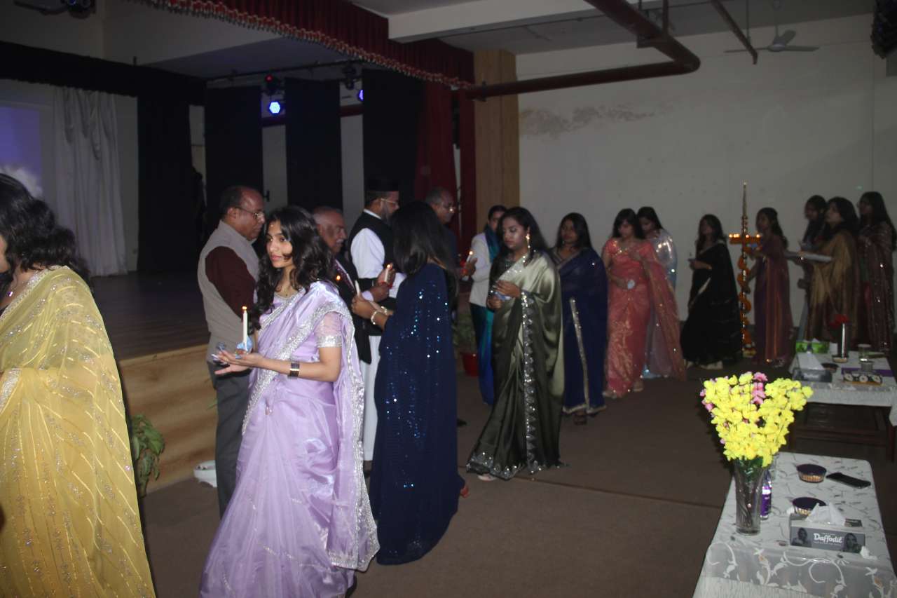 A scripture reading and a prayer for the future followed, invoking divine blessings for the students as they prepare to step into a world of greater responsibility and independence. One of the most moving moments of the ceremony was the candle-light blessing, where seniors received a symbolic flame representing knowledge, perseverance, and the values nurtured within the school. The emotional tone deepened with an audio-visual presentation that traced the journey of the batch through shared classrooms, friendships, achievements, and memories, leaving many in the audience reflective and nostalgic. Reverend Father T. J. Johnson addressed the gathering with words of wisdom, urging the students to remain grounded, compassionate, and purposeful as they move forward in life. His address served as a moral compass, reinforcing the importance of character alongside success.