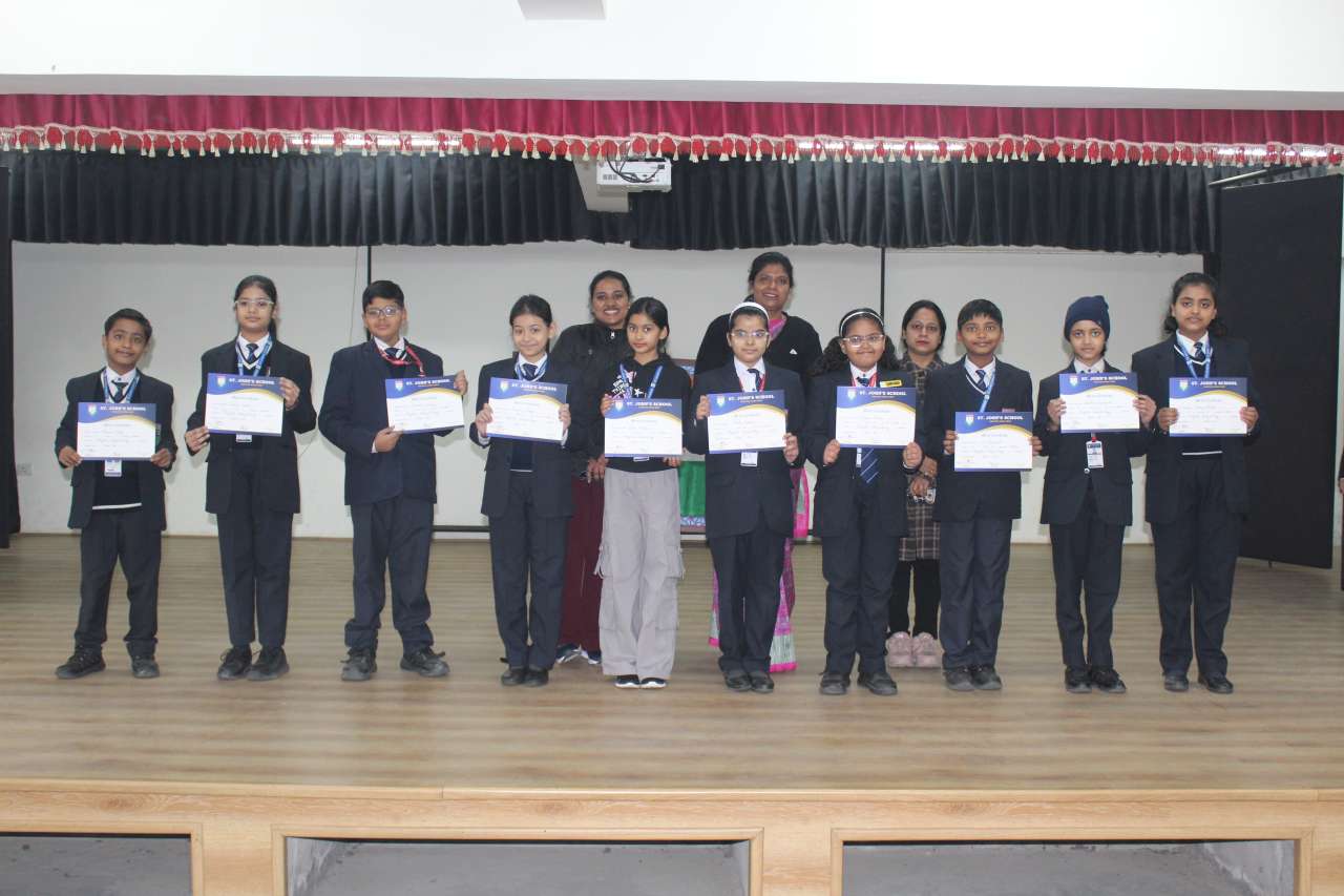 Following the assembly, the Certificate Distribution Ceremony for the Storytelling Competition (Classes III to V) was held to appreciate the creativity and confidence of the participants. Students were awarded certificates for their enthusiastic participation and impressive storytelling skills. The ceremony encouraged young learners to express themselves with imagination, confidence, and effective communication.