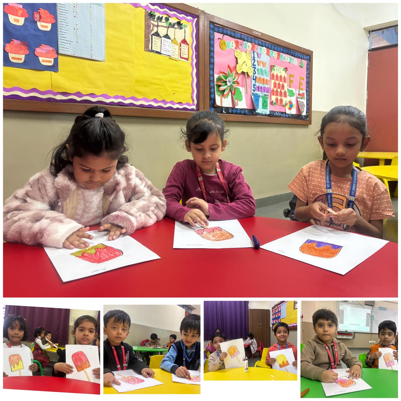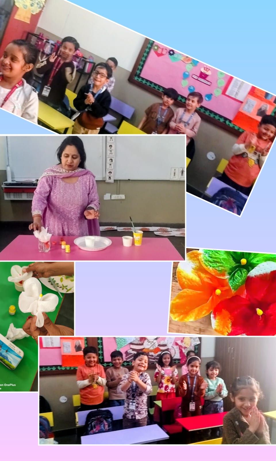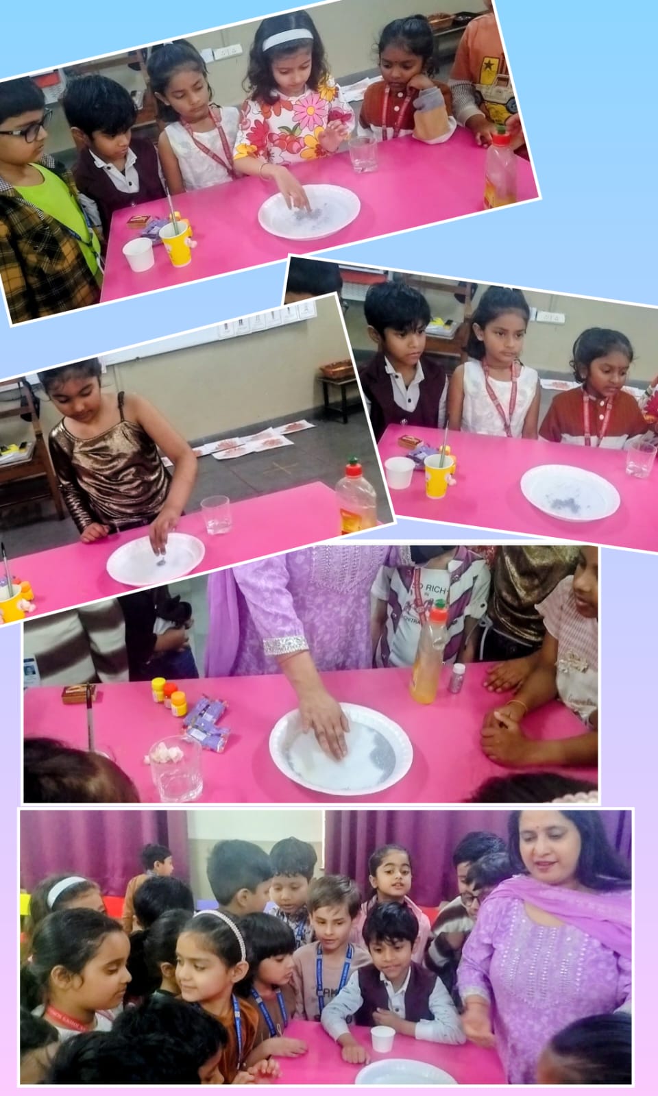 Alongside colour activities, all kindergarten sections actively participated in various science experiments. Children were excited to explore activities such as “Go Away Germs,” rainbow experiments, colour-changing water, Rain from clouds, and many more simple experiments. These hands-on activities helped children observe, question, and understand basic scientific concepts in a playful manner.