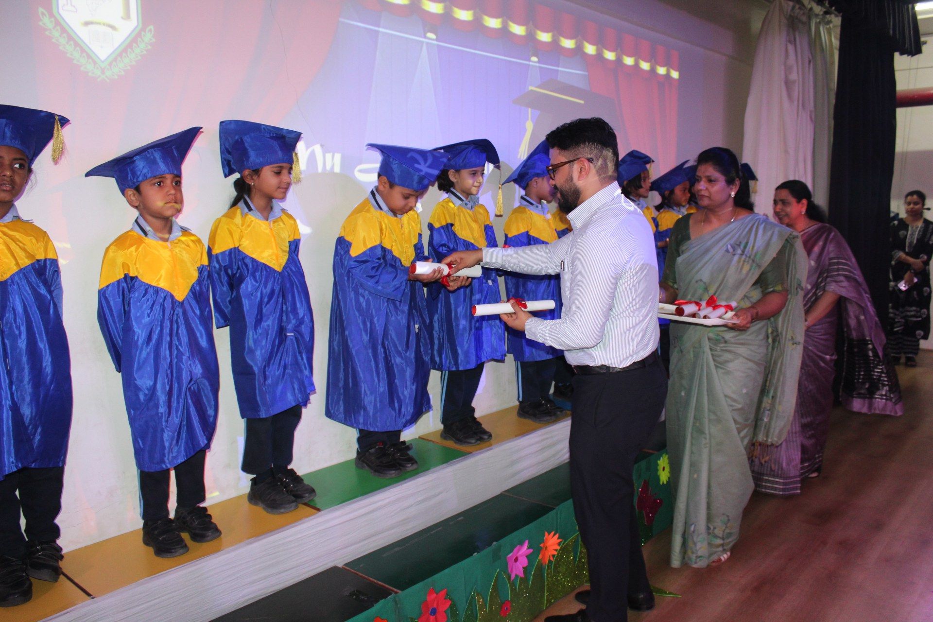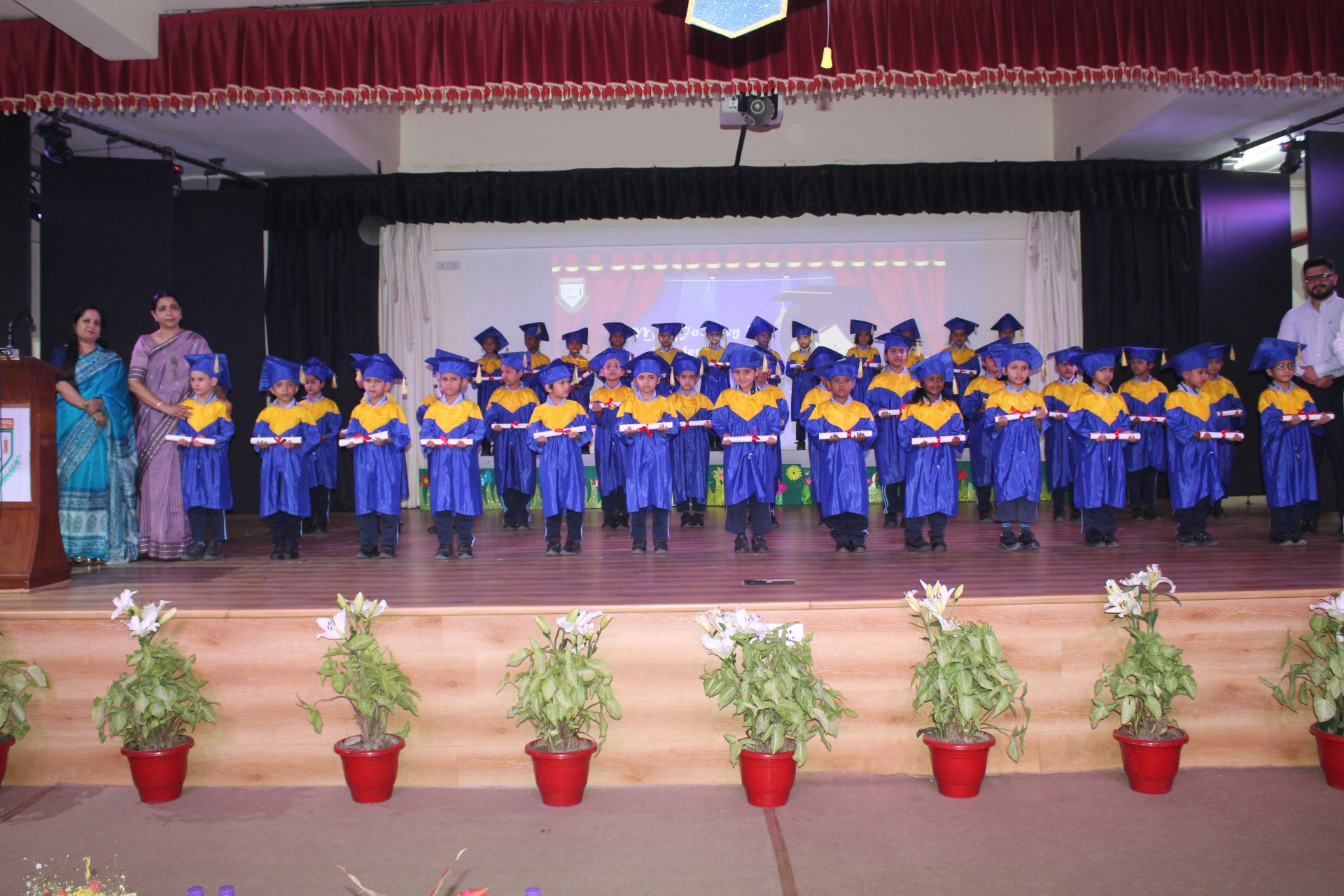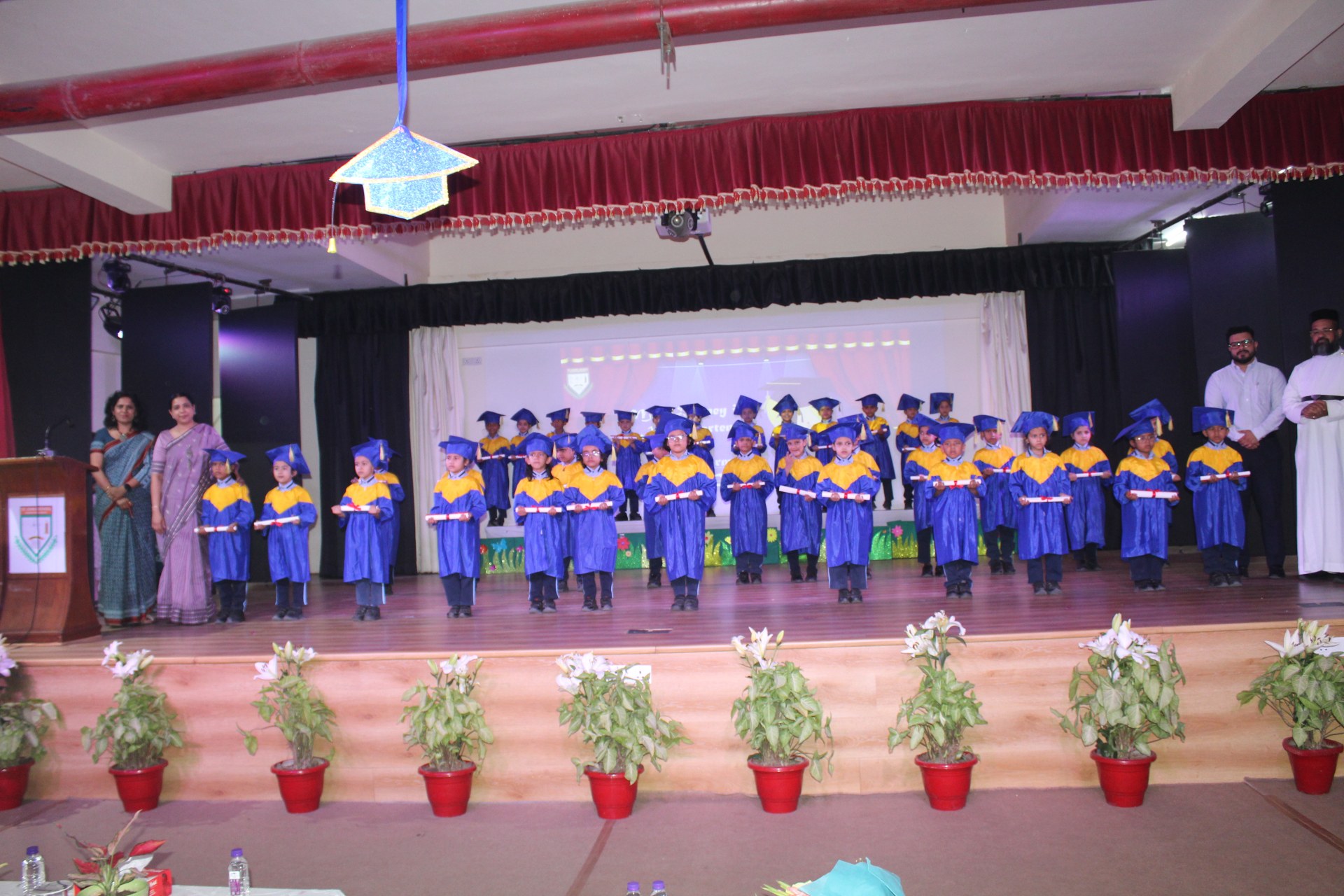 The highlight of the event was the grand convocation procession. Dressed in adorable graduation robes, the young scholars walked gracefully across the stage. The hall echoed with applause as each child received their Scroll of Merit, marking their achievements and readiness for the next academic step.
