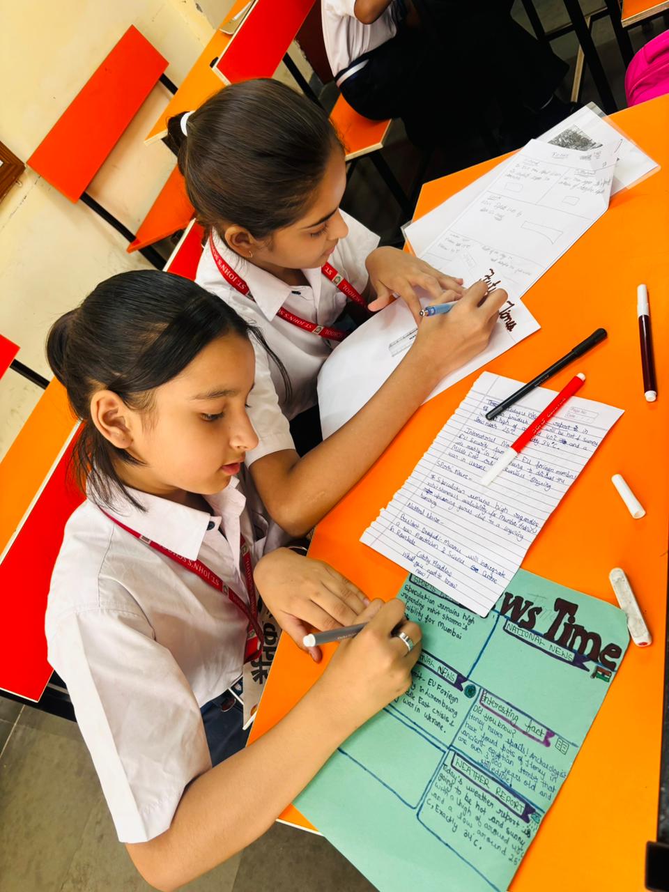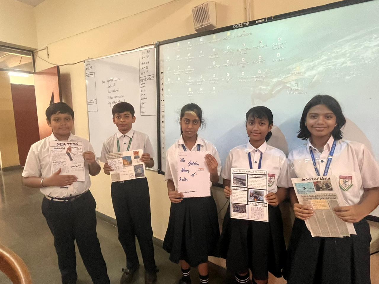 From designing eye-catching headlines to writing informative articles, students showcased their imagination, teamwork, and communication skills. Each group created their own unique newspaper, covering topics like current events, school news, fun facts, and creative stories.