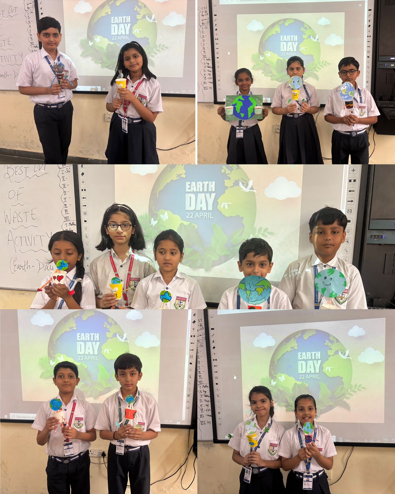 On the occasion of Earth Day, various engaging and meaningful activities were conducted for students of Grades III to V with the aim of spreading awareness about environmental conservation and encouraging eco-friendly habits. The students participated with great enthusiasm and showcased their creativity through hands-on learning experiences.